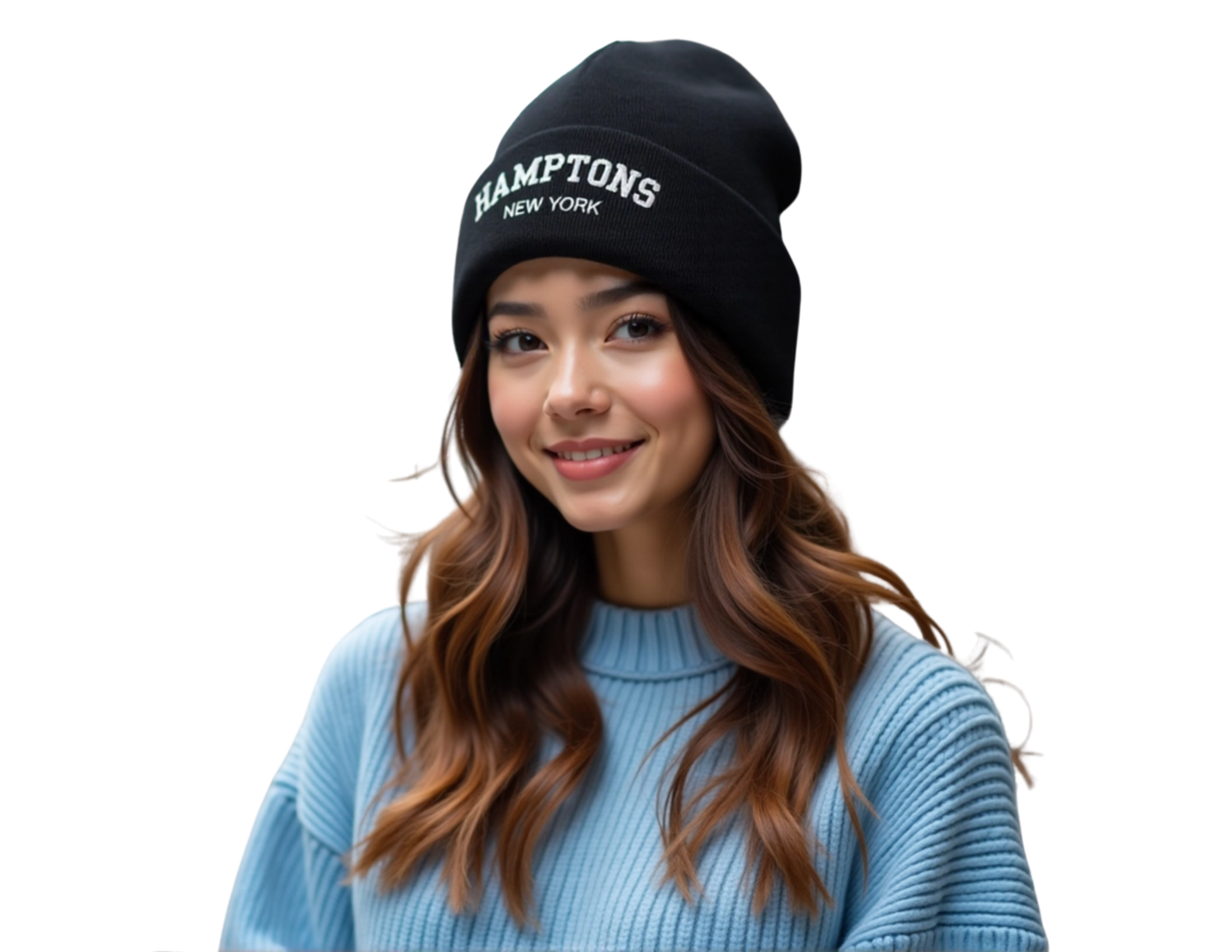Umgeschlagene Beanie | bestickte Strickmütze Hamptons New York | in schwarz, blau, grau