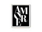Amore - eine schönes Wort für die Liebe in großen weißen Lettern auf schwarzem Grund gesetzt.