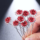 Romantische rote Rosen-Brauthaarnadeln – ein 8er-Set