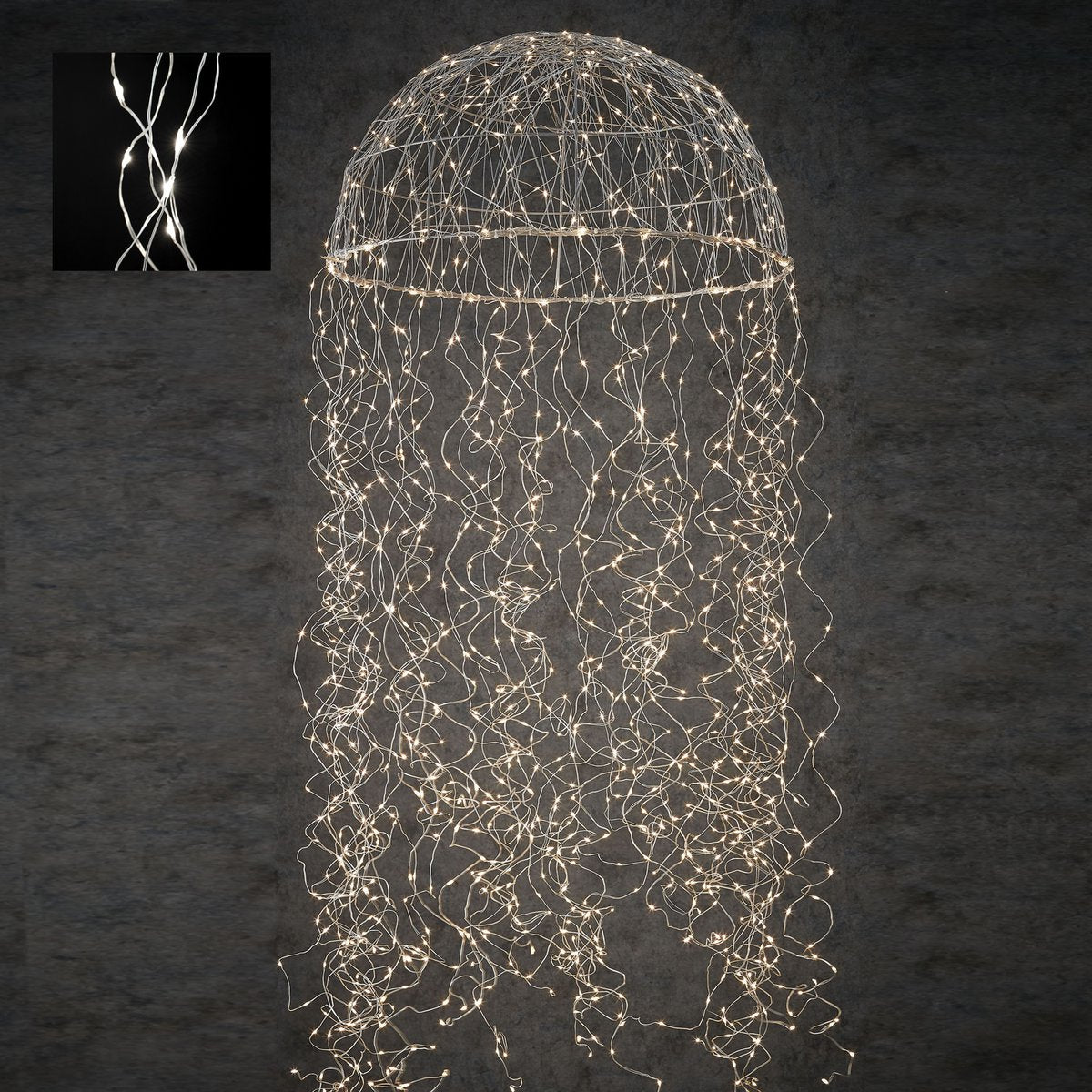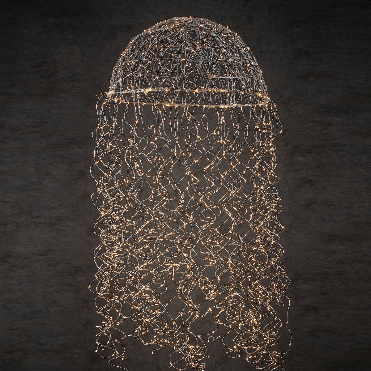 Kronleuchter Qualle mit warmweißer LED-Beleuchtung – H200 x Ø60 cm – Silber