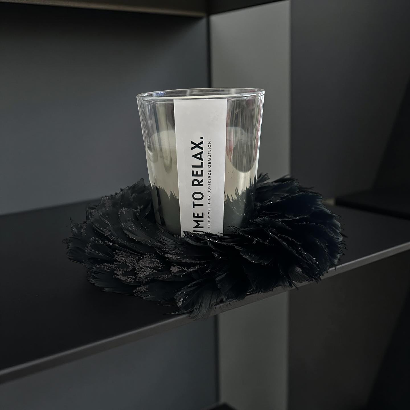 Kaufe die schwarz lackierte Stumpenkerze oder die im grau schimmernden Glas direkt im Set dazu!