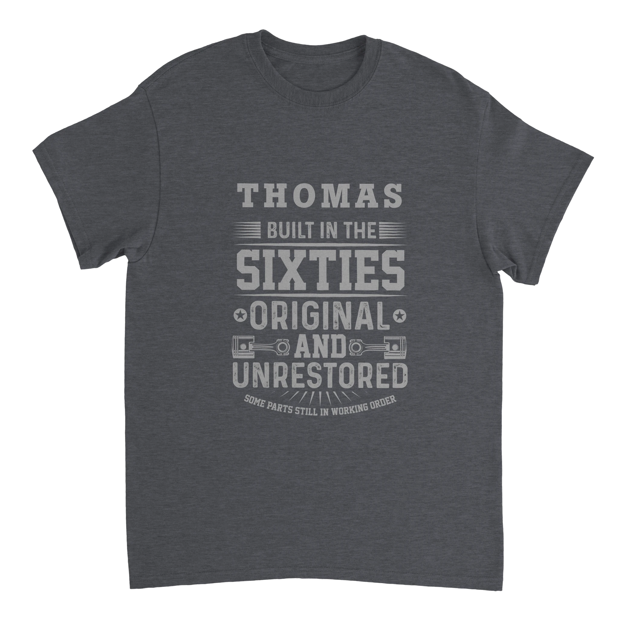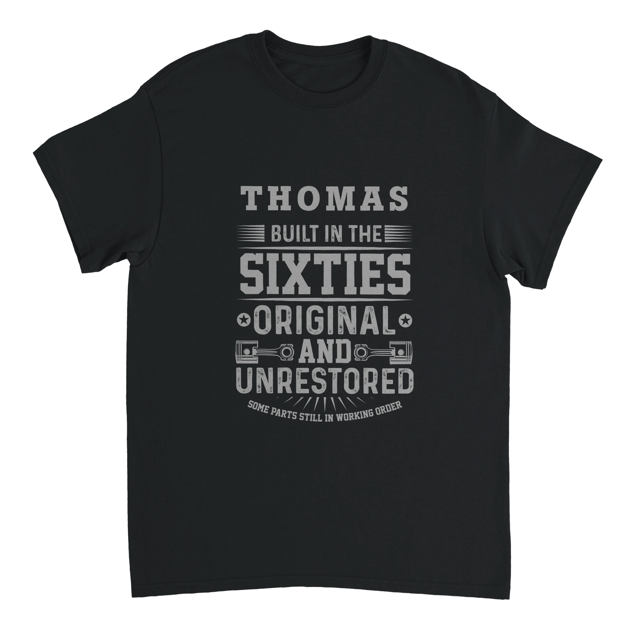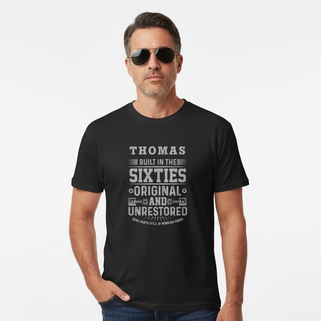Entdecke unser personalisierbares Boomer "Sixties" Shirt, das perfekte Geschenk für Männer mit Baujahr 60er Jahre. Ein tolle Geschenkidee für Väter, Brüder, Freunde - als Gag oder zum runden Geburtstag.