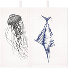 Art Up your Küchenzeile: Geschirrtuch-Set "Meer"Produktinformationen:• 2er-Set bestehend aus den Motiven "Tiefseequelle" und "Schwertfisch"• strapazierfähige Küchenhandtücher aus Halbleinen (55 % Leinen / 45 % Baumwolle)• in der EU produziert und lokal in Wuppertal für dich bedruckt• Größe: 70 x 50 cm• Der einseitige Druck ist hochwertig und farbintensiv• bei bis zu 60 Grad waschbar• zertifiziert mit dem ÖKO-TEX® Standard 100• Green Energy ProduktionAlles in trockenen Tüchern: Unsere schönen Geschirrtücher sind nicht nur robust, sondern auch noch nachhaltig. Der Druck ist hochwertig und hält Wäschen bei bis zu 60 Grad stand. Und das handgemalte Motiv unserer Künstlerin Hanna Ligeti sorgt dafür, dass dein neues Küchenhandtuch selbst beim Abhängen und Trocknen noch eine gute Figur macht. Sauber!