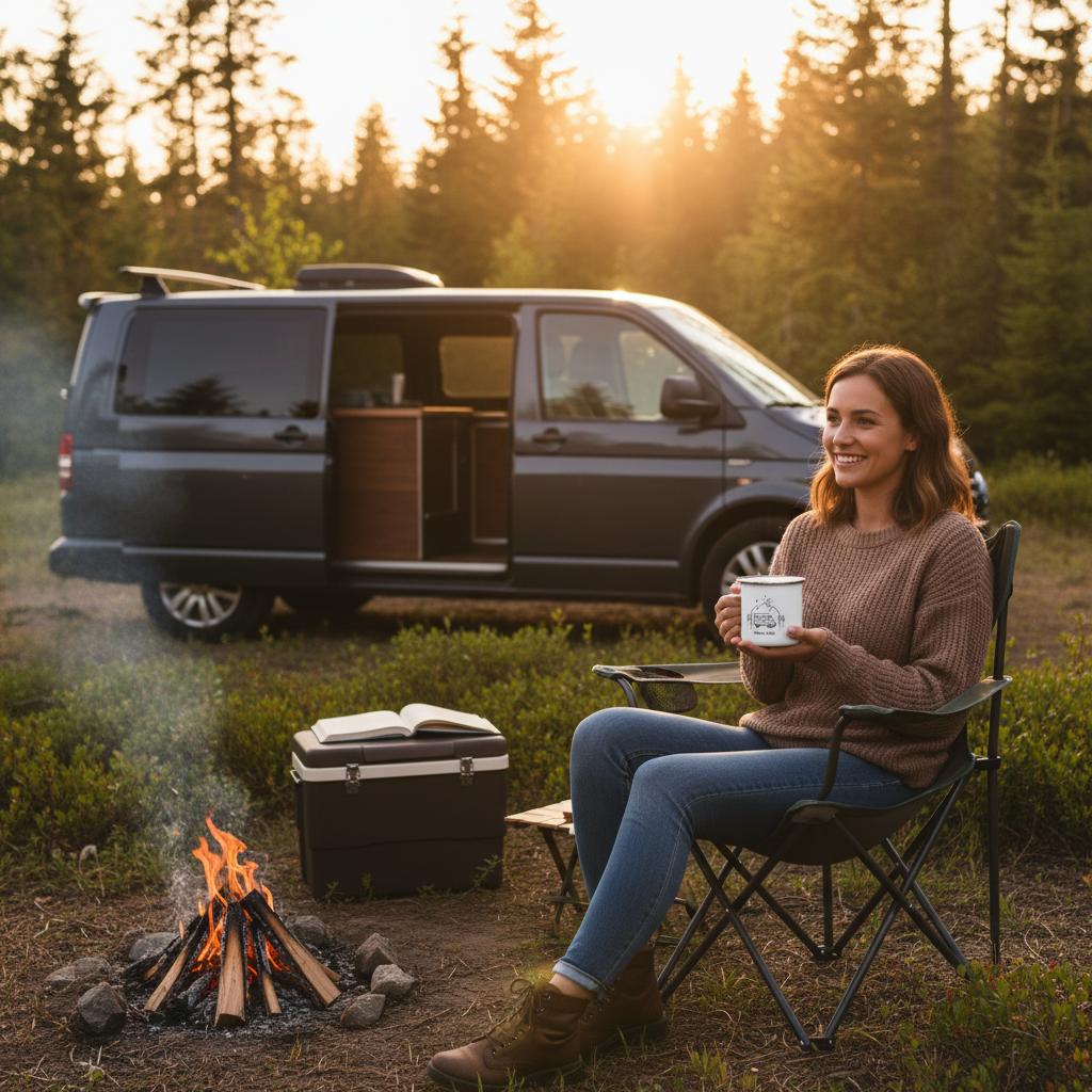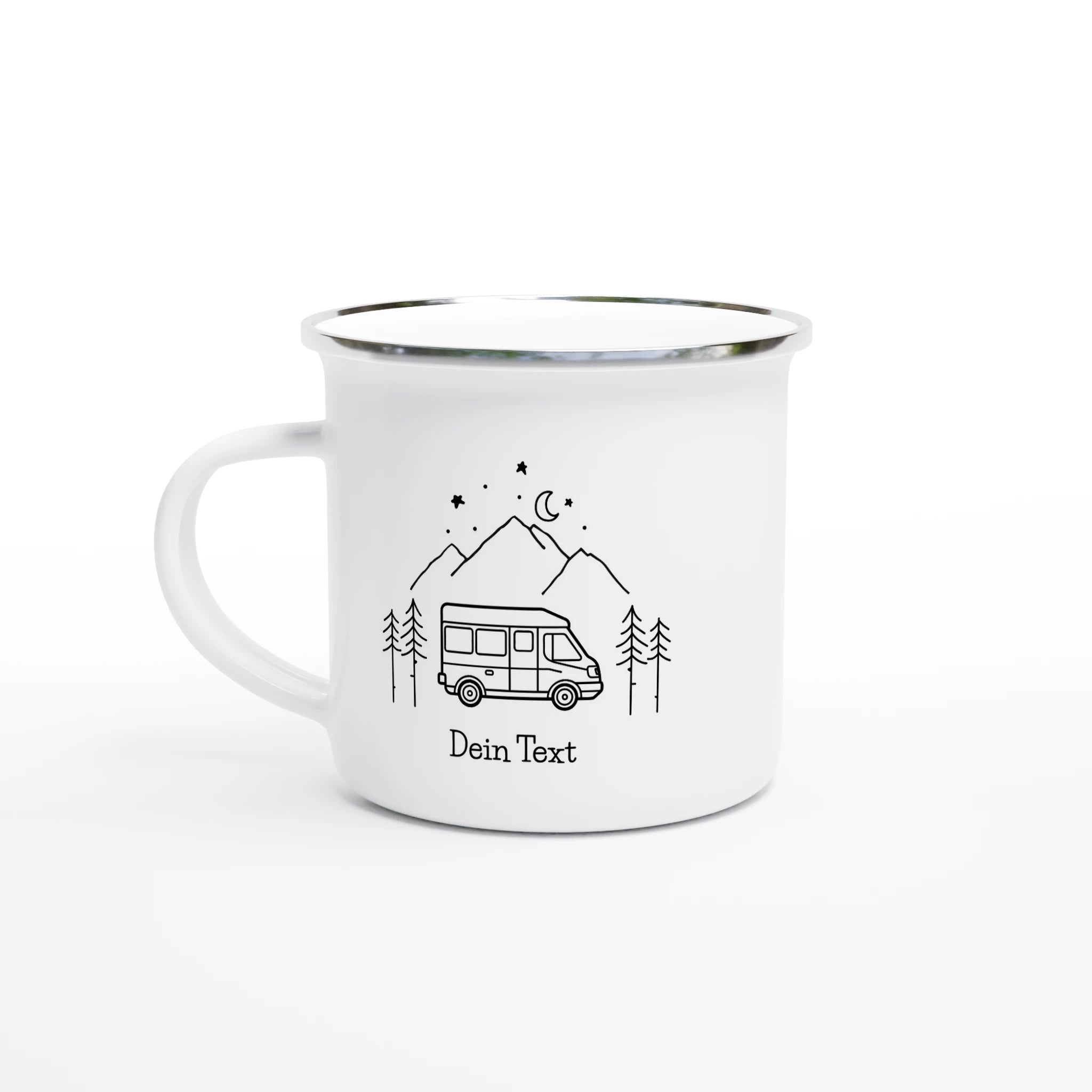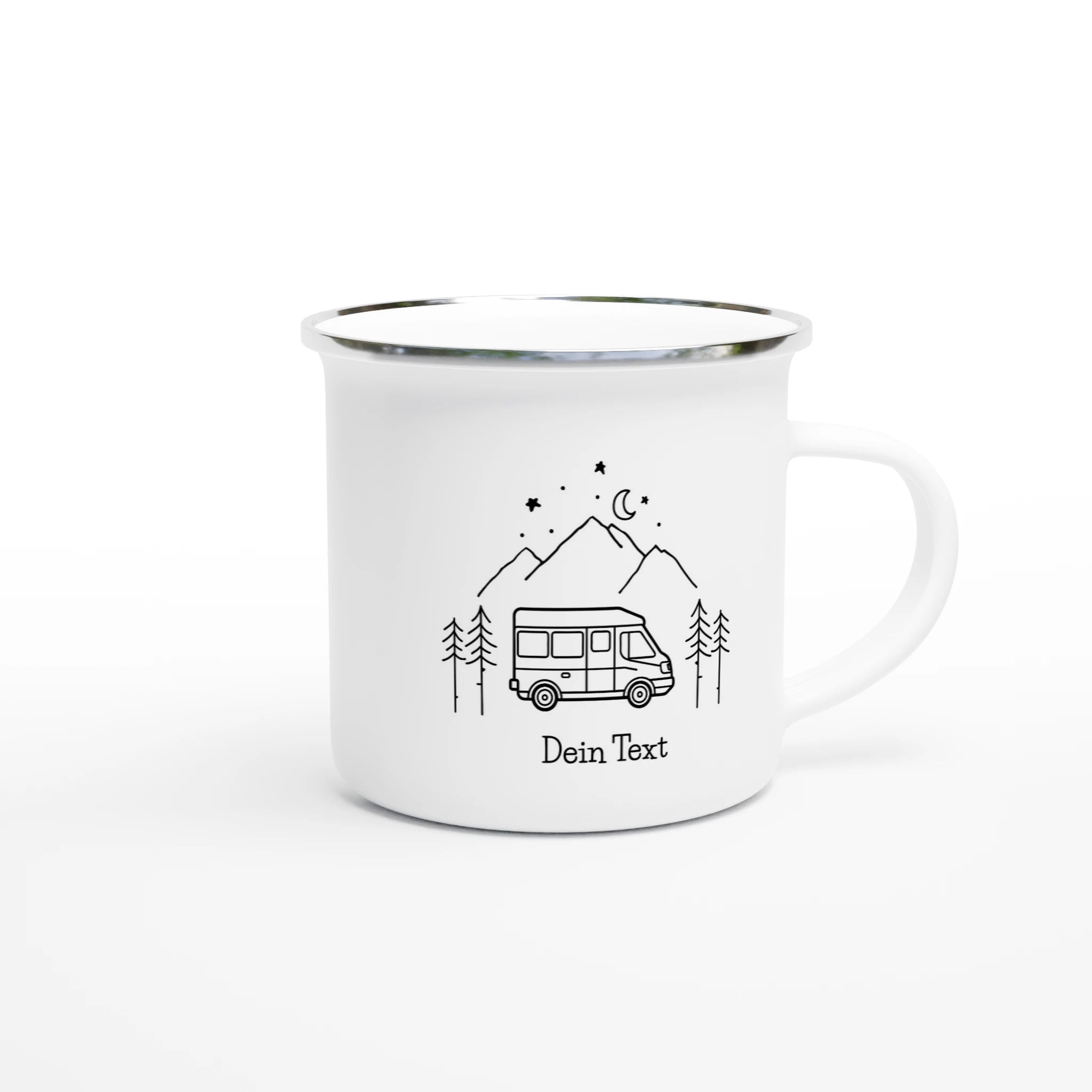 Personalisierte Emaille Camping Tasse – Dein Entwurf eines Wohnmobil-Motivs und Deinem Text