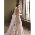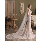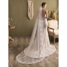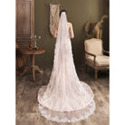 Brautschleier in Kathedralenlänge mit Spitzenbesatz – Accessoire aus weißem Hochzeitstüll im königlichen Stil – vor Gebrauch bügeln
