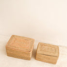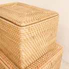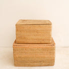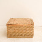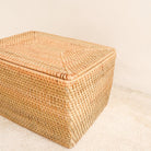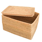 Aufbewahrungskorb mit Deckel, Regalkorb aus beigem Rattan, handgeflochtener Dekokorb GRAHA (2 Größen)