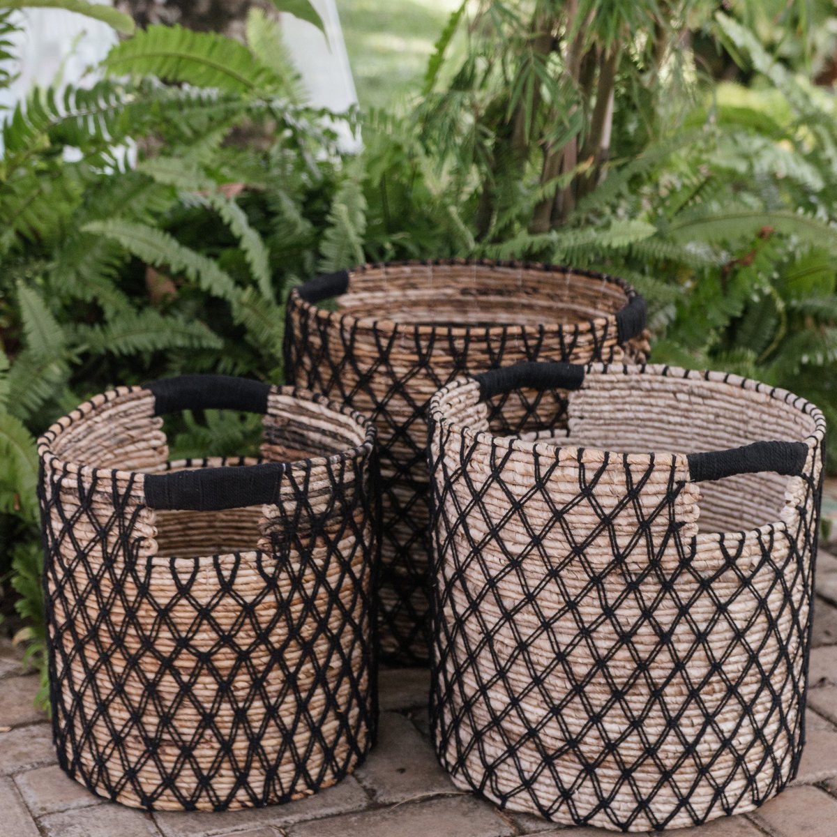 Aufbewahrungskorb PURA | Pflanzenkorb | Wäschekorb (schwarz) aus Bananenfaser (3 Größen)