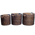 Der runde Pura-Korb wird komplett von Hand aus Bananenfasern gefertigt. Die angebrachten schwarzen Baumwollkordeln sind kunstvoll im traditionellen „Kawung“-Muster gewebt und ein echter Hingucker. Besonders in Kombination mit einem Korb mit weißen Kordeln, wie zum Beispiel mit unseren Manduro- oder Kubu-Modellen, ergibt sich ein faszinierender Kontrast.