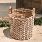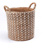 Sind Sie auf der Suche nach einem Korb, der sowohl praktisch als auch dekorativ ist? Unser Kerso-Korb ist aus robuster, gerollter Bananenfaser gefertigt und kunstvoll mit einem einzigartigen Webmuster aus weißen Baumwollschnüren verziert.
