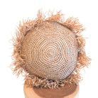 Rundes Boho-Kissen mit Fransen, Dekokissen Ø40/50 cm, Dekokissen aus Raffiabast, Sofakissen mit Füllung, TARAKAN beige