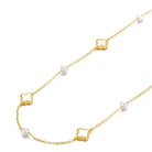 Diese Halskette besteht aus einem wunderschönen MOP-Kleeblatt-Anhänger mit einer Größe von 7 mm und natürlichen Süßwasserperlen mit einer Größe von 4 mm. Die Gesamtlänge der Halskette beträgt 40 + 5 cm, wodurch sie an jeden Ausschnitt und jedes Outfit angepasst werden kann. Das für die Herstellung dieser Halskette verwendete Material ist massives Silber mit 18-Karat-Echtgoldbeschichtung, was für Langlebigkeit und einen lang anhaltenden Glanz sorgt. Die Kombination aus MOP-Klee und Süßwasserperlen schafft ein klassisches und zeitloses Design, das zu jedem Anlass getragen werden kann. Diese Halskette ist perfekt, um sowohl lässigen als auch formellen Outfits einen Hauch von Eleganz zu verleihen.