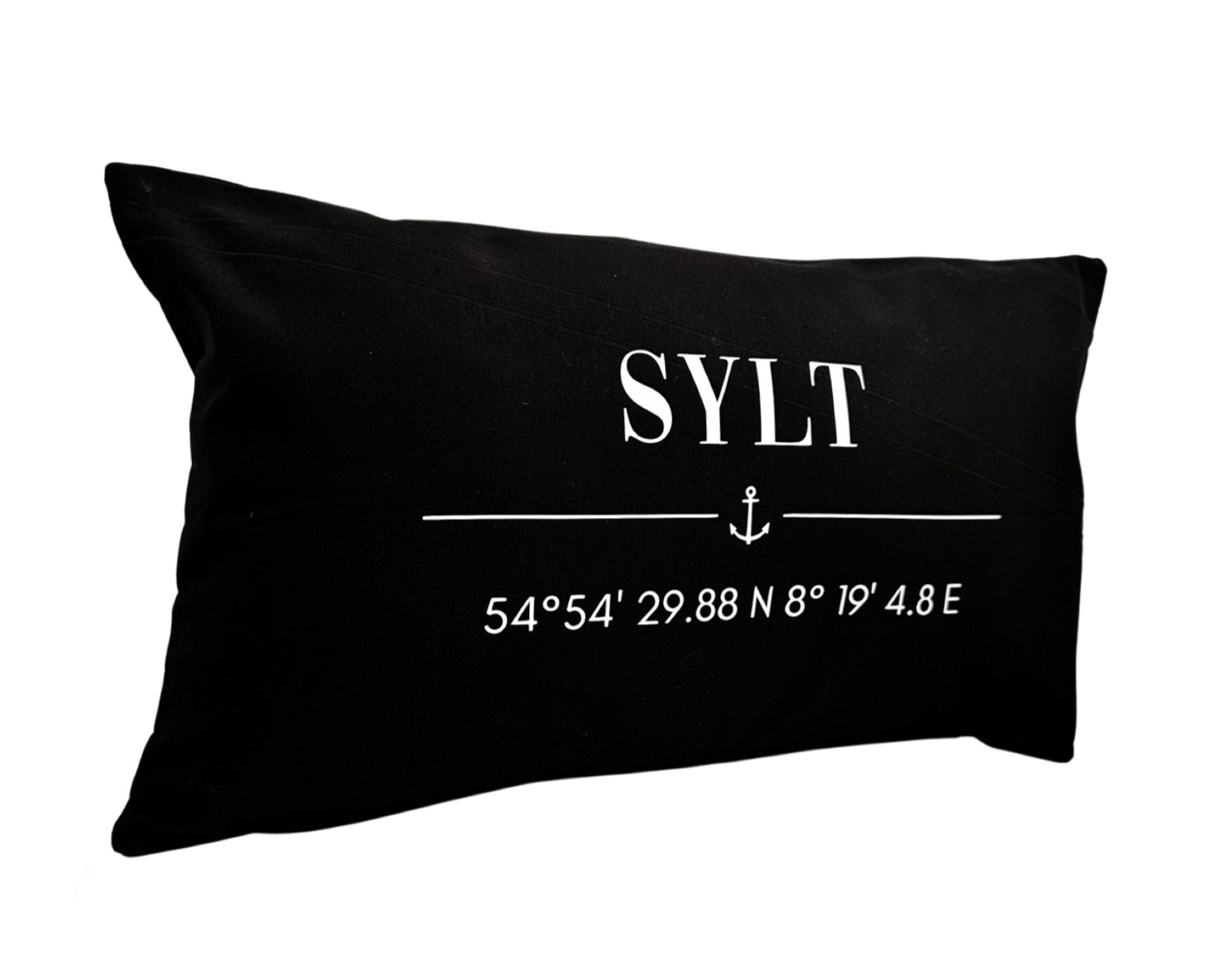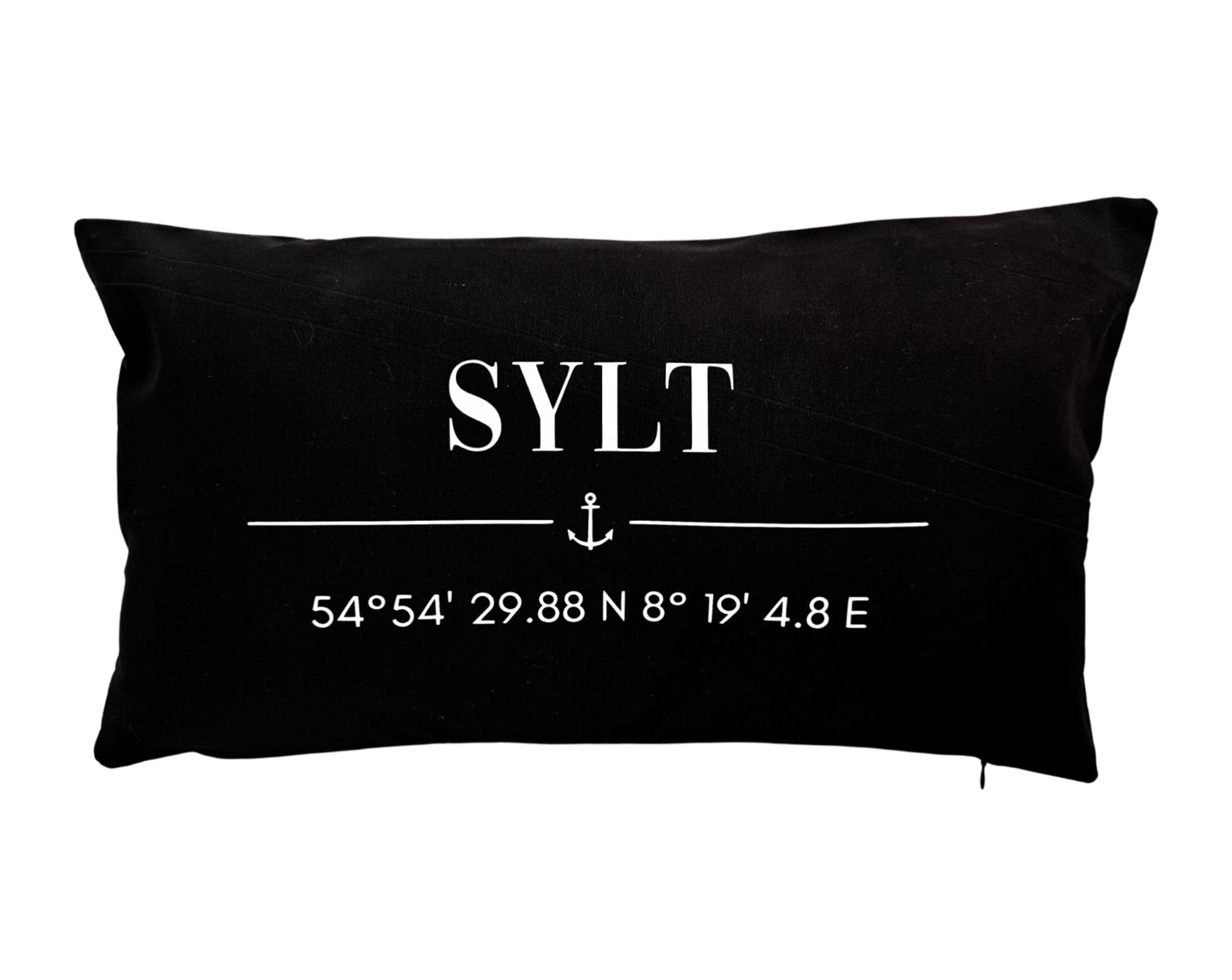 Kissen | Sylt | Kissenbezug 30 x 50 cm | Baumwolle | Koordinaten | Anker | maritim | grau schwarz beige