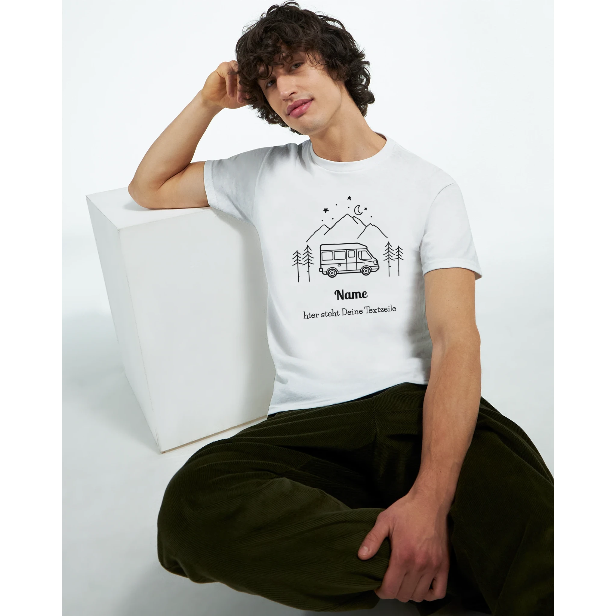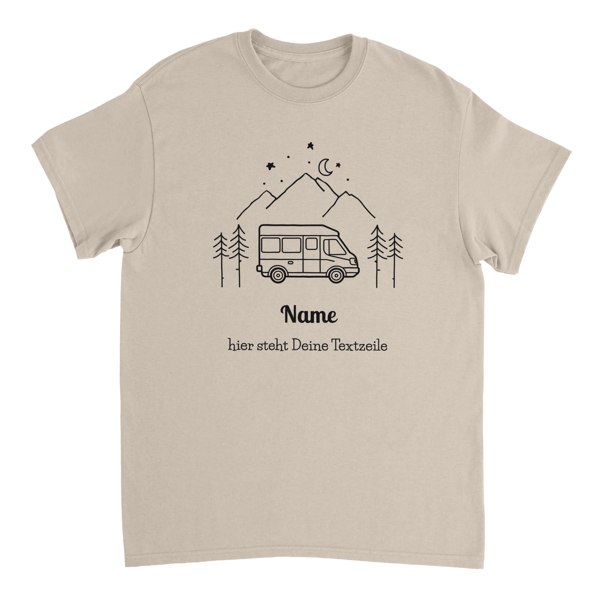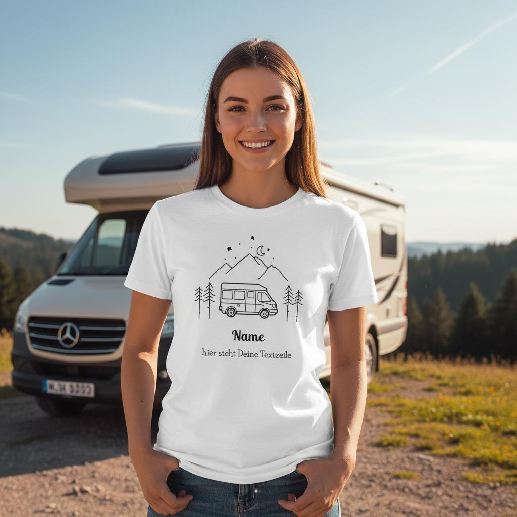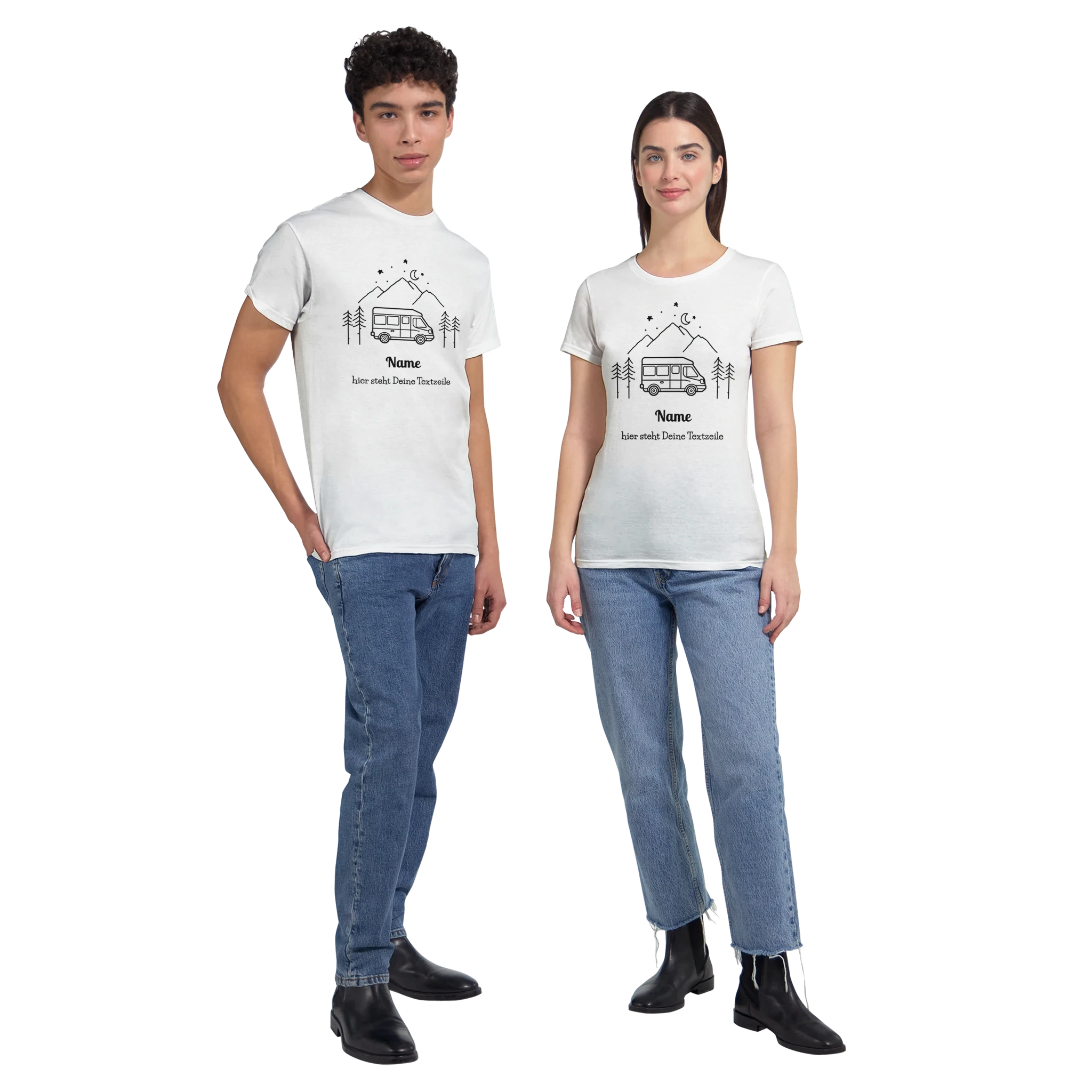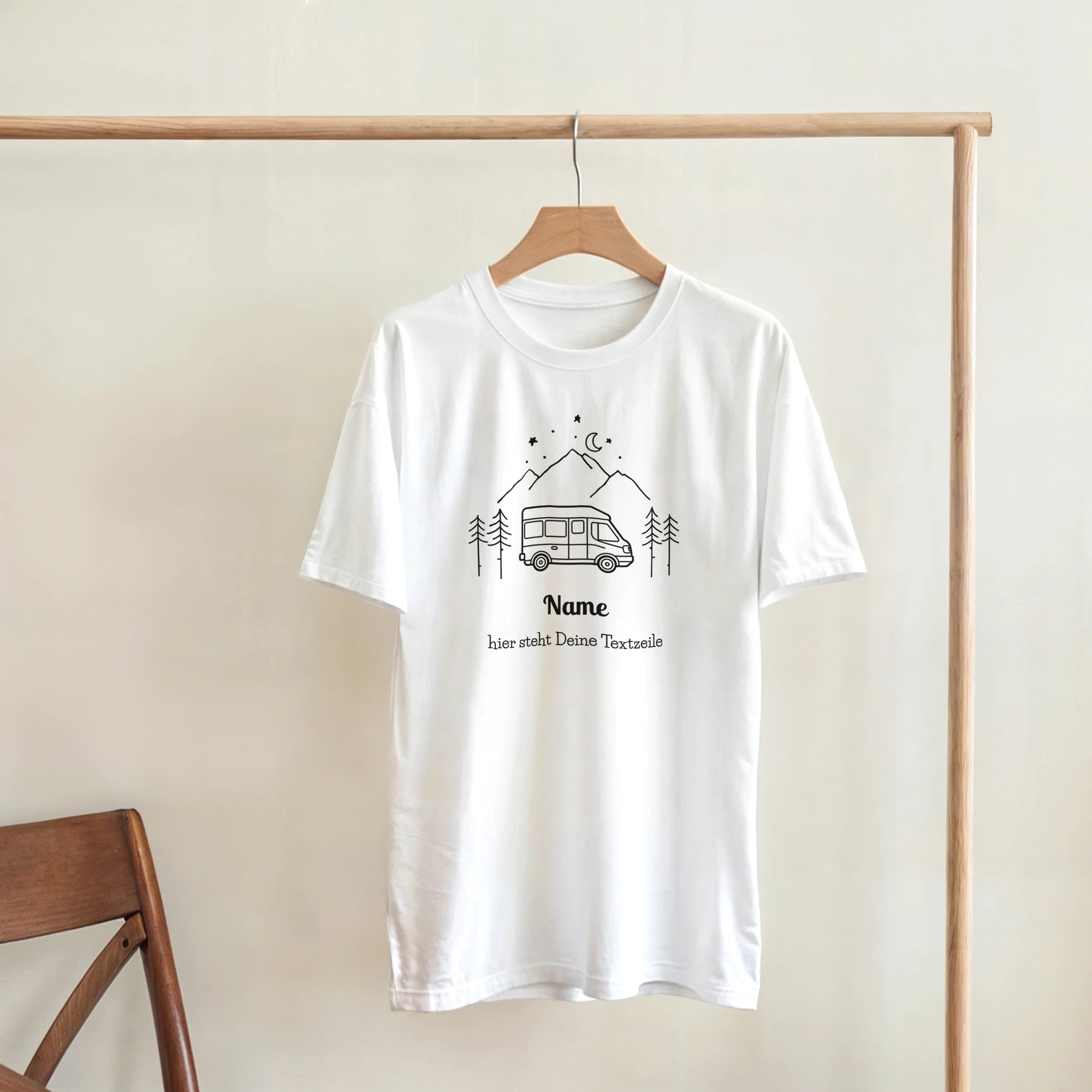 Camping T-Shirt – Personalisiere dein Abenteuer | Hochwertige Baumwolle | unisex Shirt in weiß, rosa, sand und grau