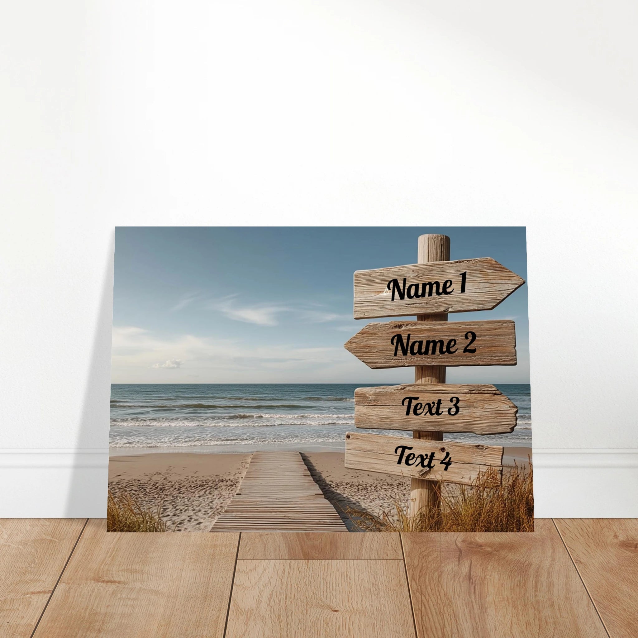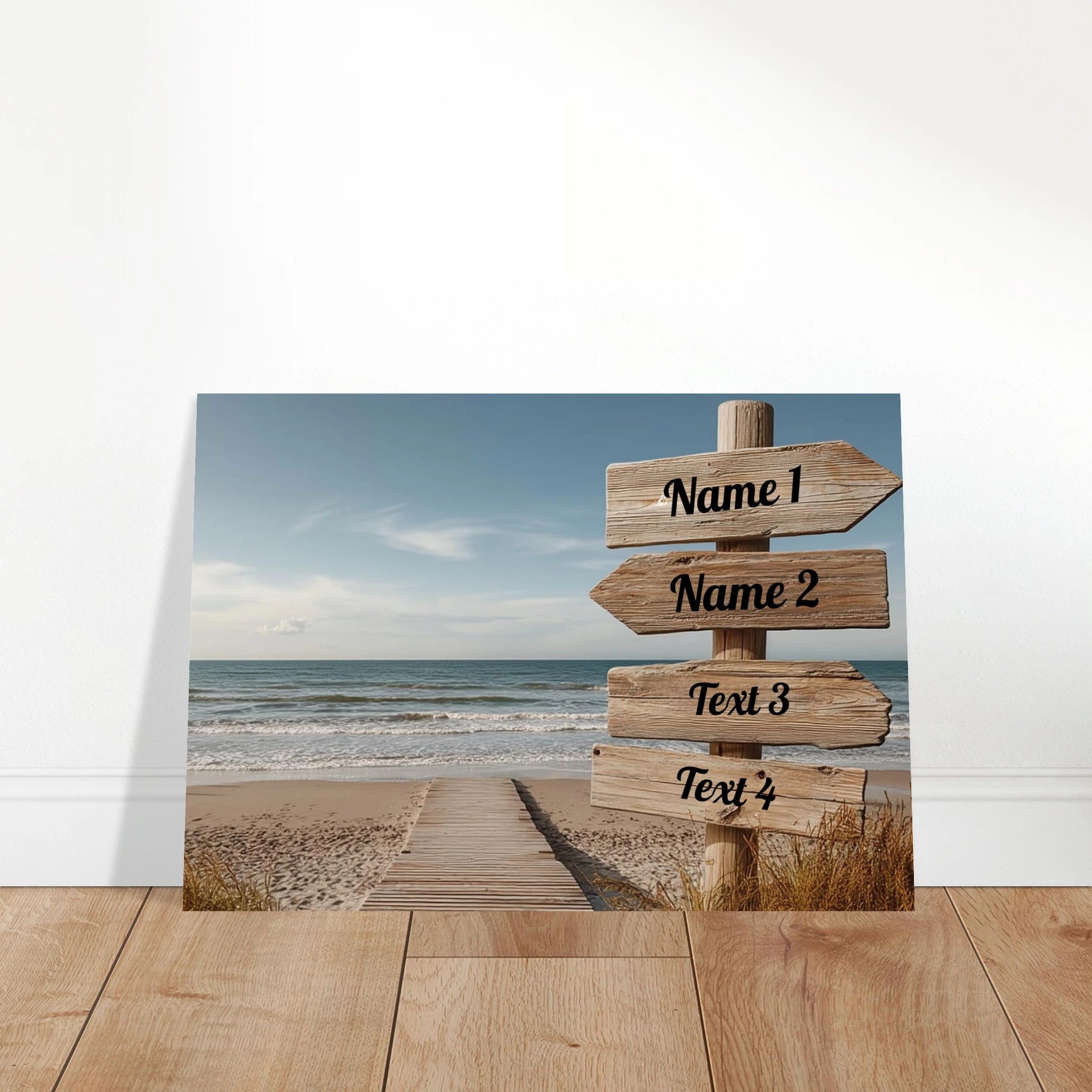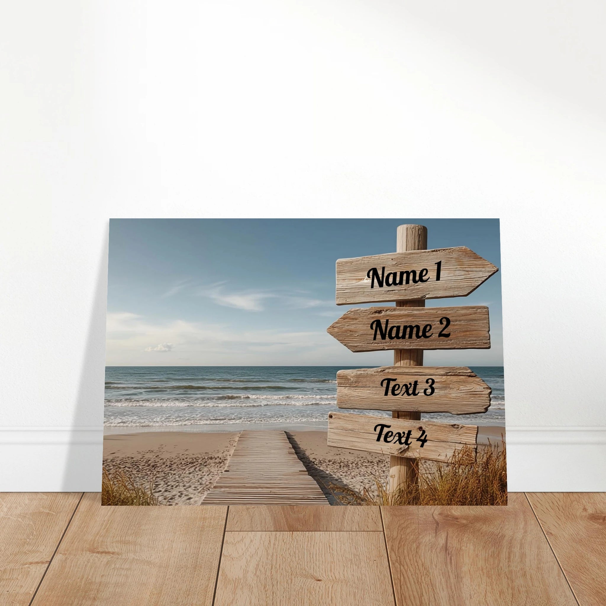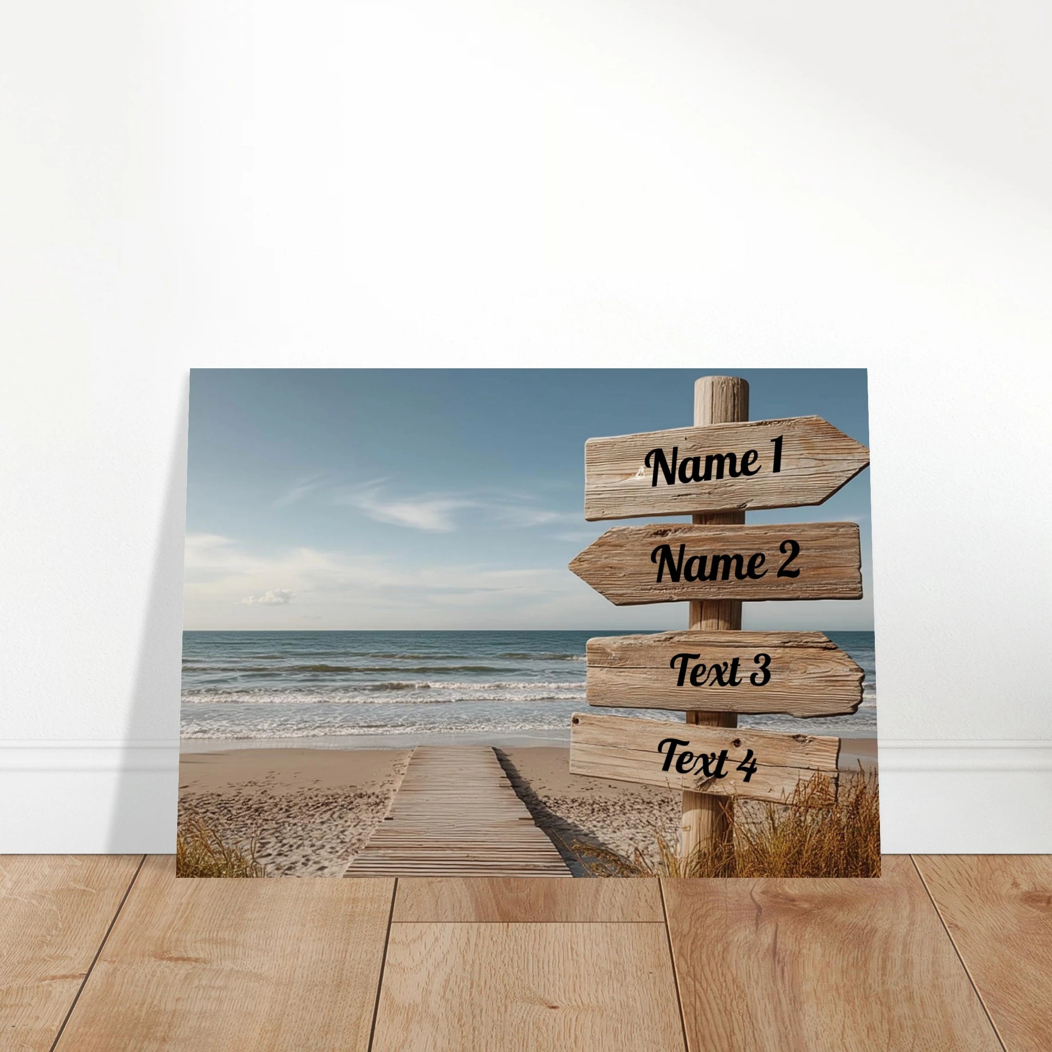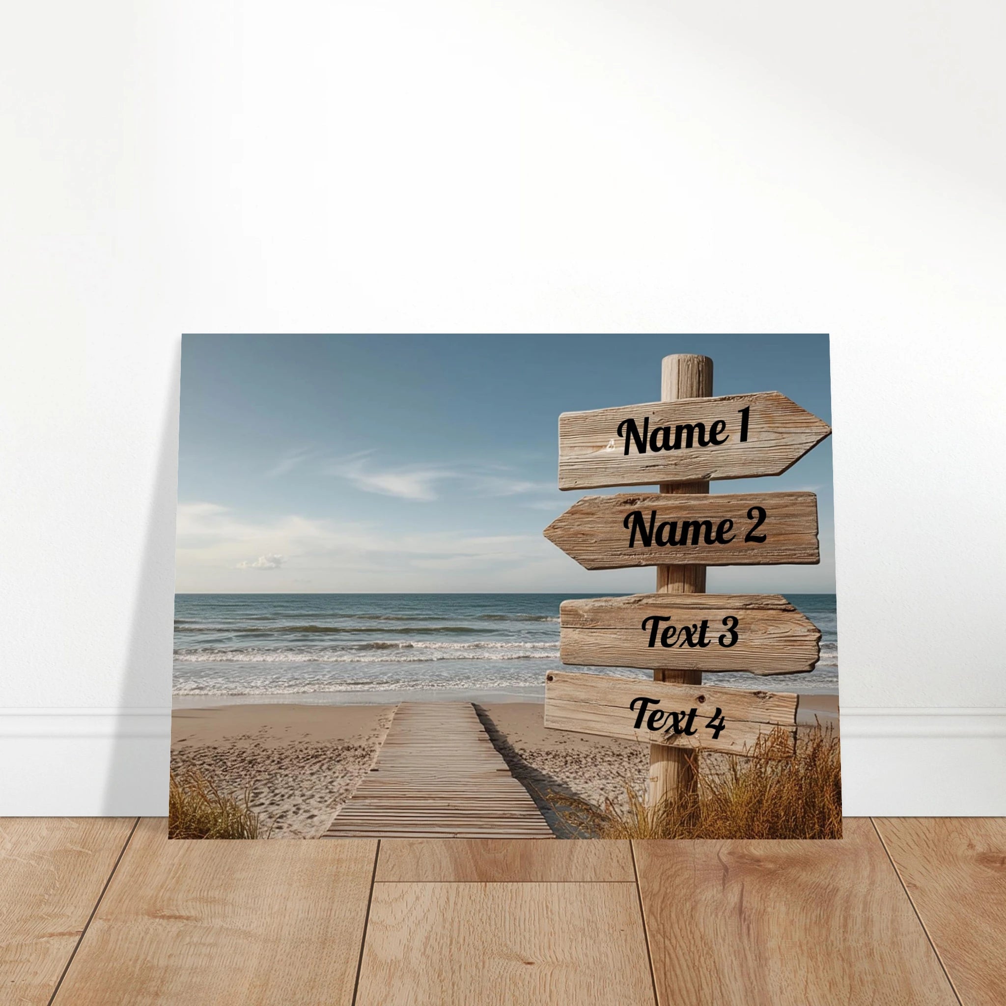 Verleihe Deinem Raum eine persönliche Note mit unserem anpassbaren Poster, gestalte den Strand Wegweiser nach Deinen Wünschen und füge Deinen eigenen Text hinzu! Indem Du die Namen oder Texte in die Spalten einträgst, kannst Du online bereits sehen, wie Dein Poster aussehen wird! Schau dafür in die 30 x 40 cm Ansicht!