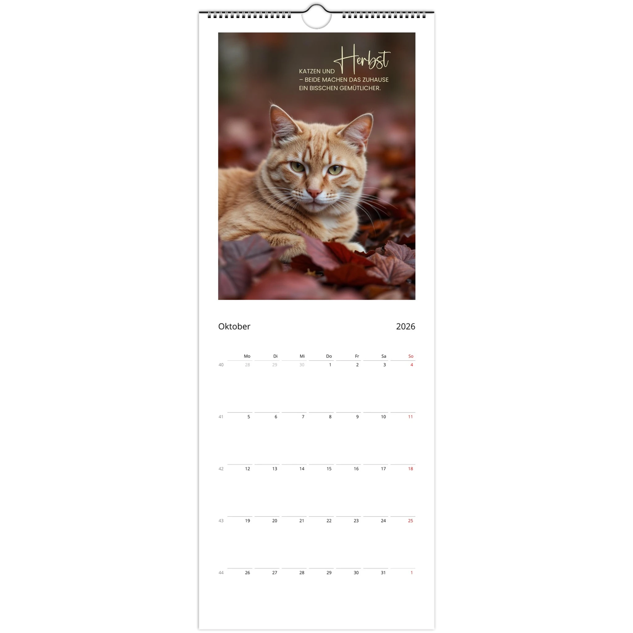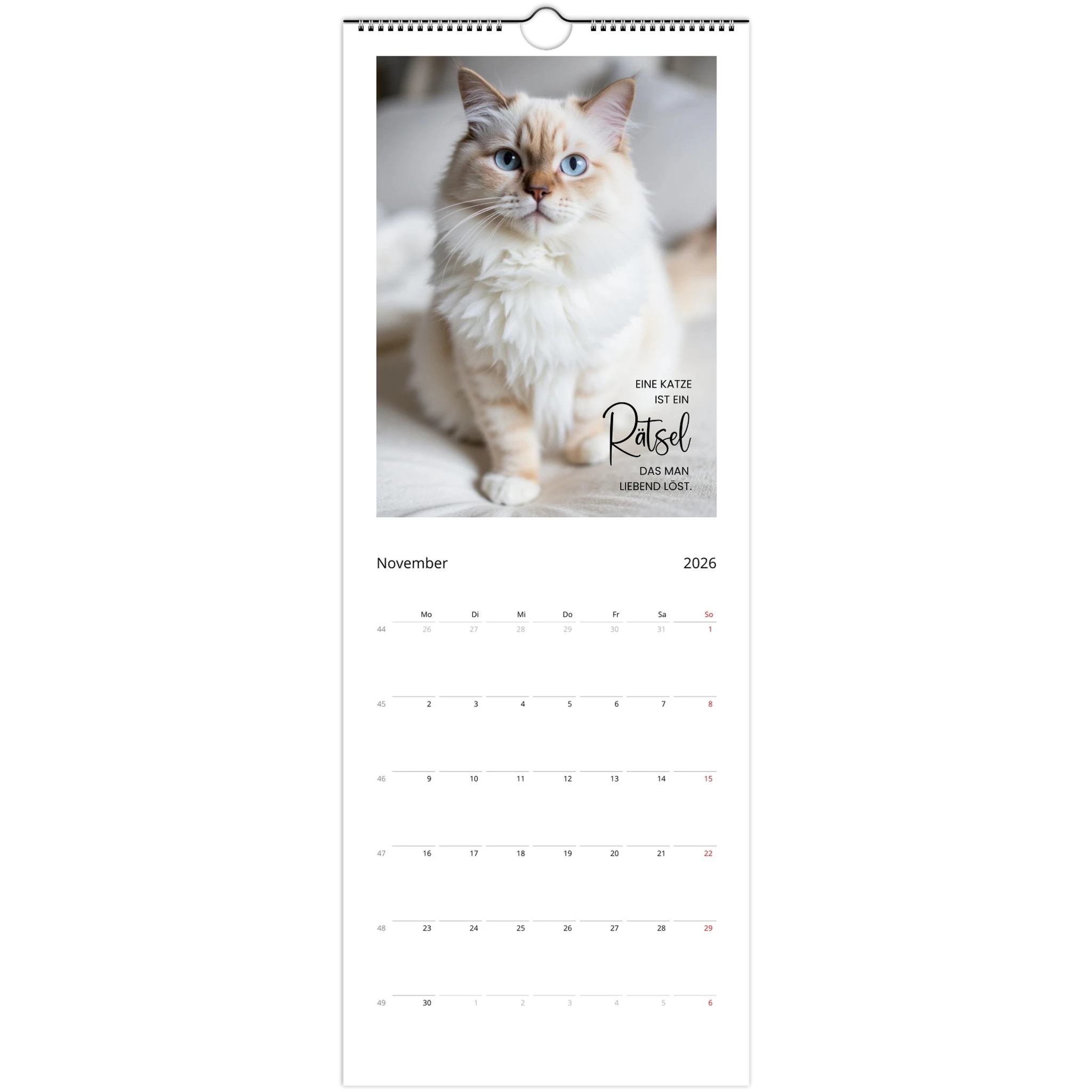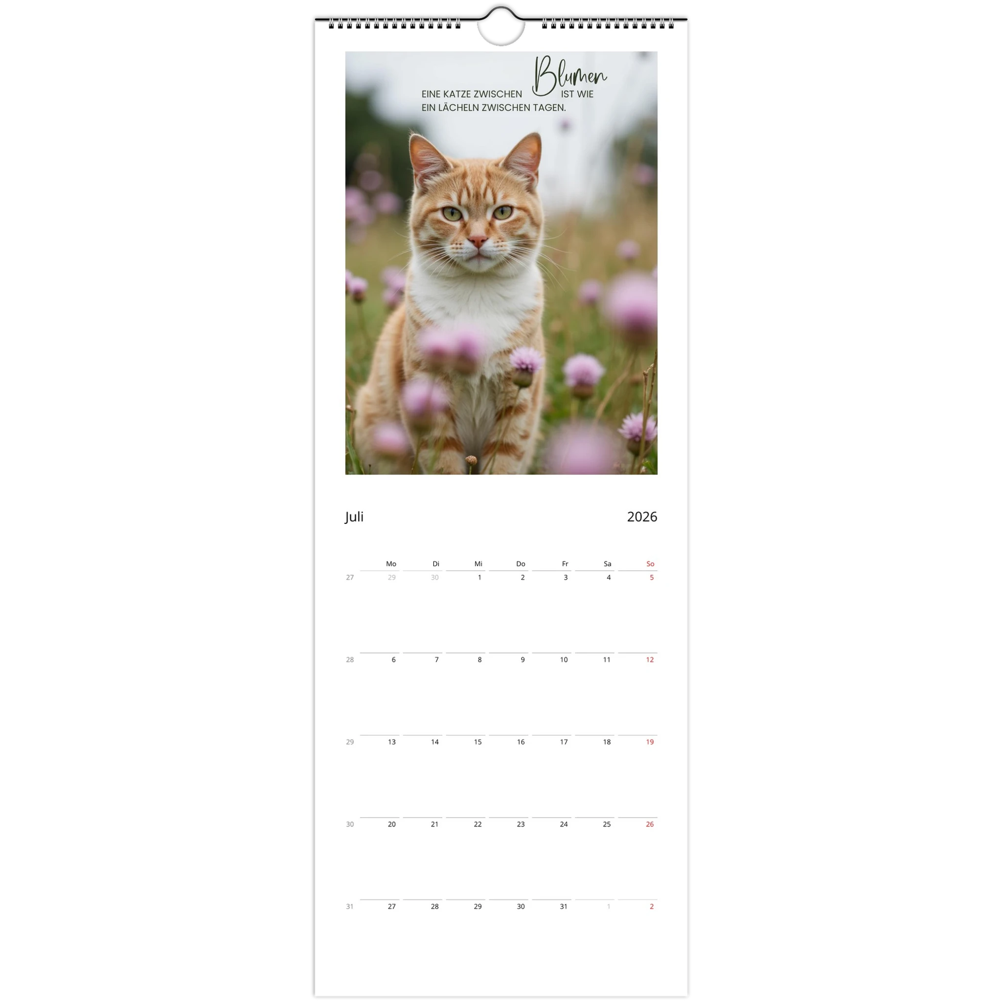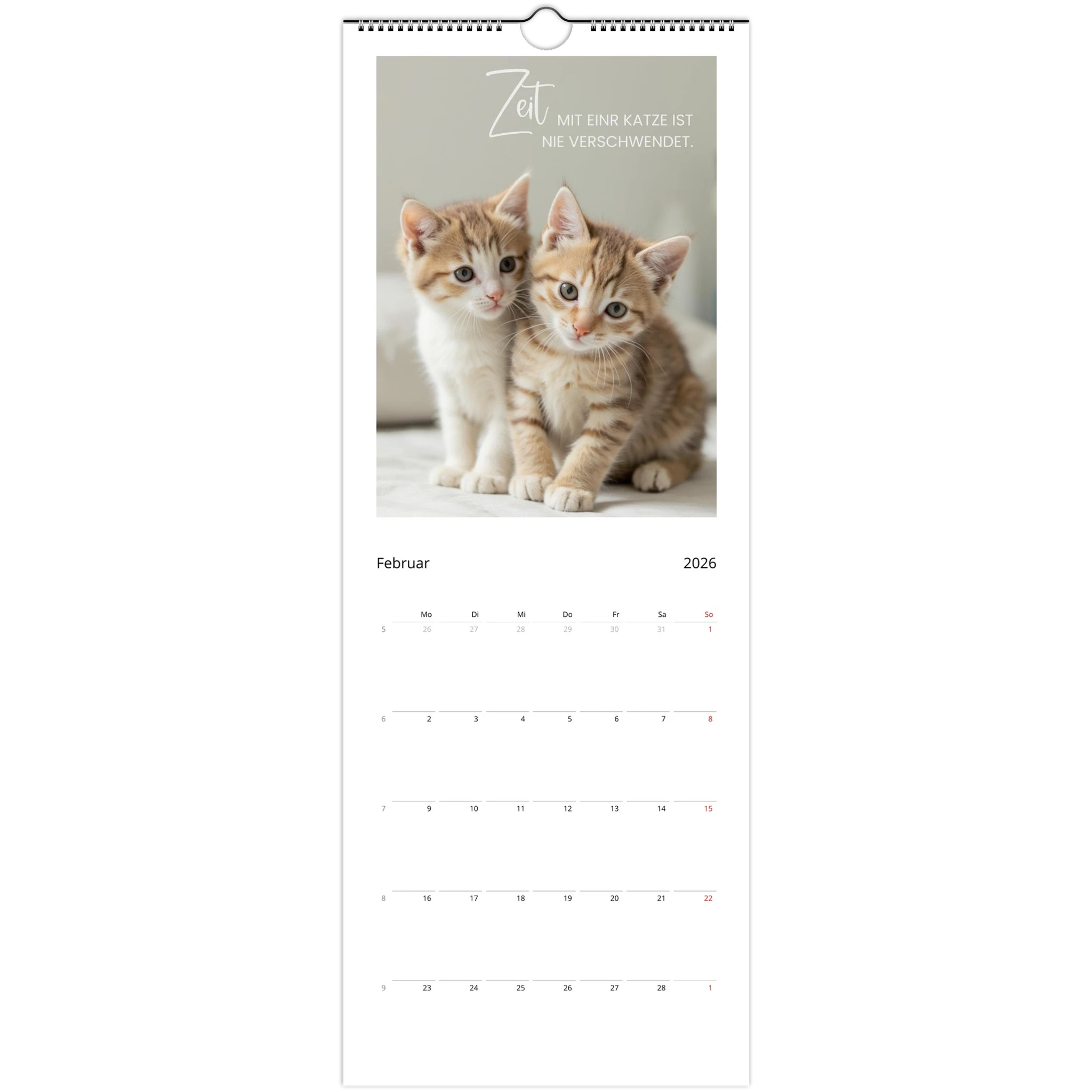 Entdecke den perfekten Wandkalender für Katzenliebhaber! Unser personalisierbarer Wandkalender 2026 ist nicht nur ein praktisches Datumstool, sondern auch ein täglicher Begleiter voller liebevoller Zitate und Sprüche für Katzenliebhaber.
