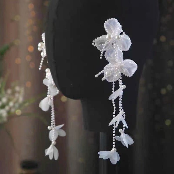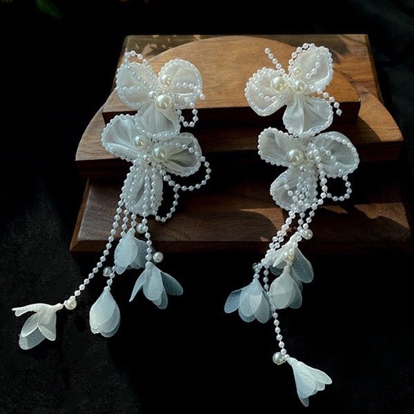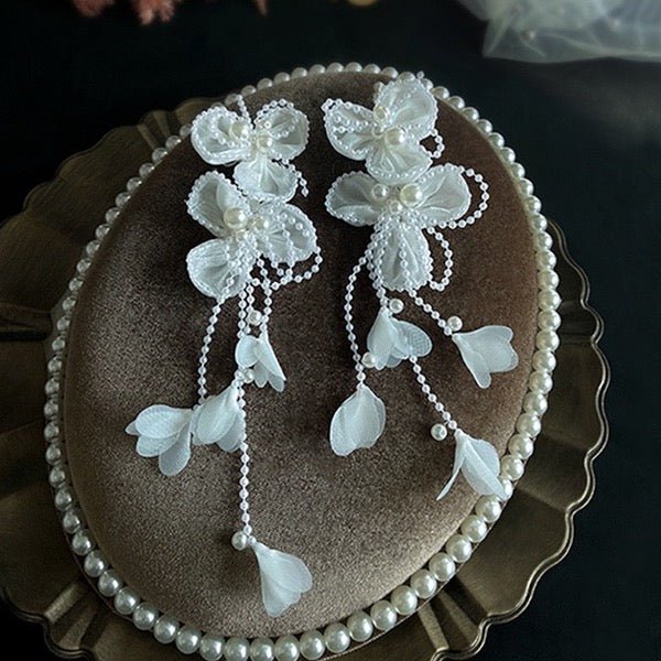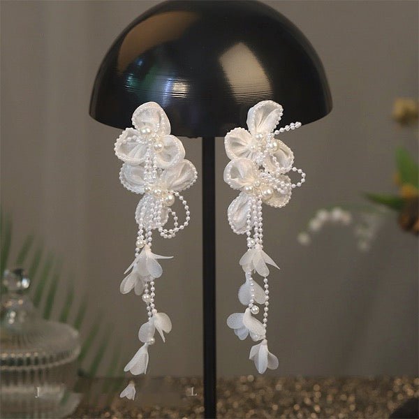 Spitzenblumen-Kristall-Brautohrringe – kein Piercing
