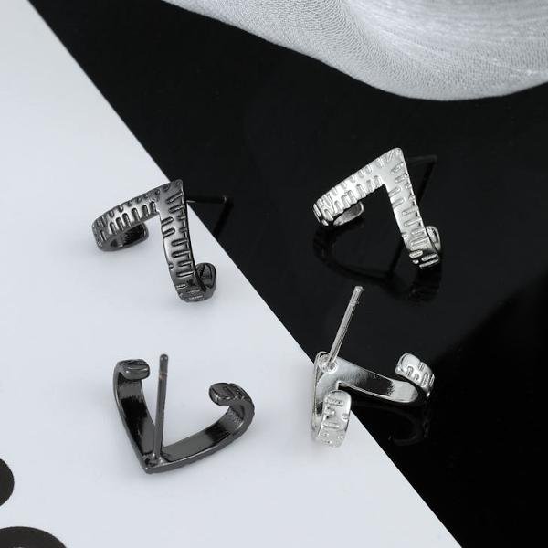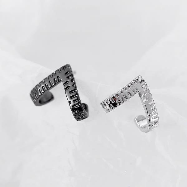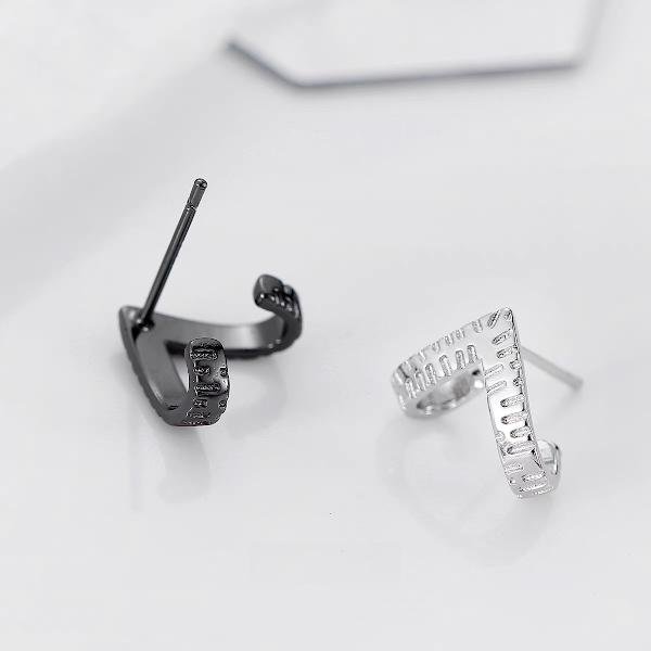 Einzigartige V-förmige Ohrringe – Schwarz und Silber