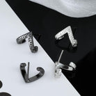 Diese V-förmigen Ohrringe für Herren enden in einem geschwungenen Ring, der sorgfältig entworfen wurde, um die Konturen des Ohrs perfekt zu ergänzen. Die schwarze Variante besteht aus Messing mit versilberten Details und verfügt über eine zusätzliche Schicht schwarzer Emaille für eine kühne und moderne Ästhetik. Mit den Maßen 1 x 1,3 cm sind diese Ohrstecker die ideale Wahl für alle, die sowohl klassische als auch moderne Elemente schätzen.