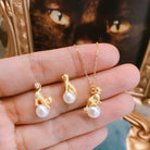 Niedliche asymmetrische Katzenohrringe und Halskette