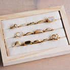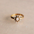R613: Vintage-Ring aus Edelstahl mit Perlensteinen - Gold