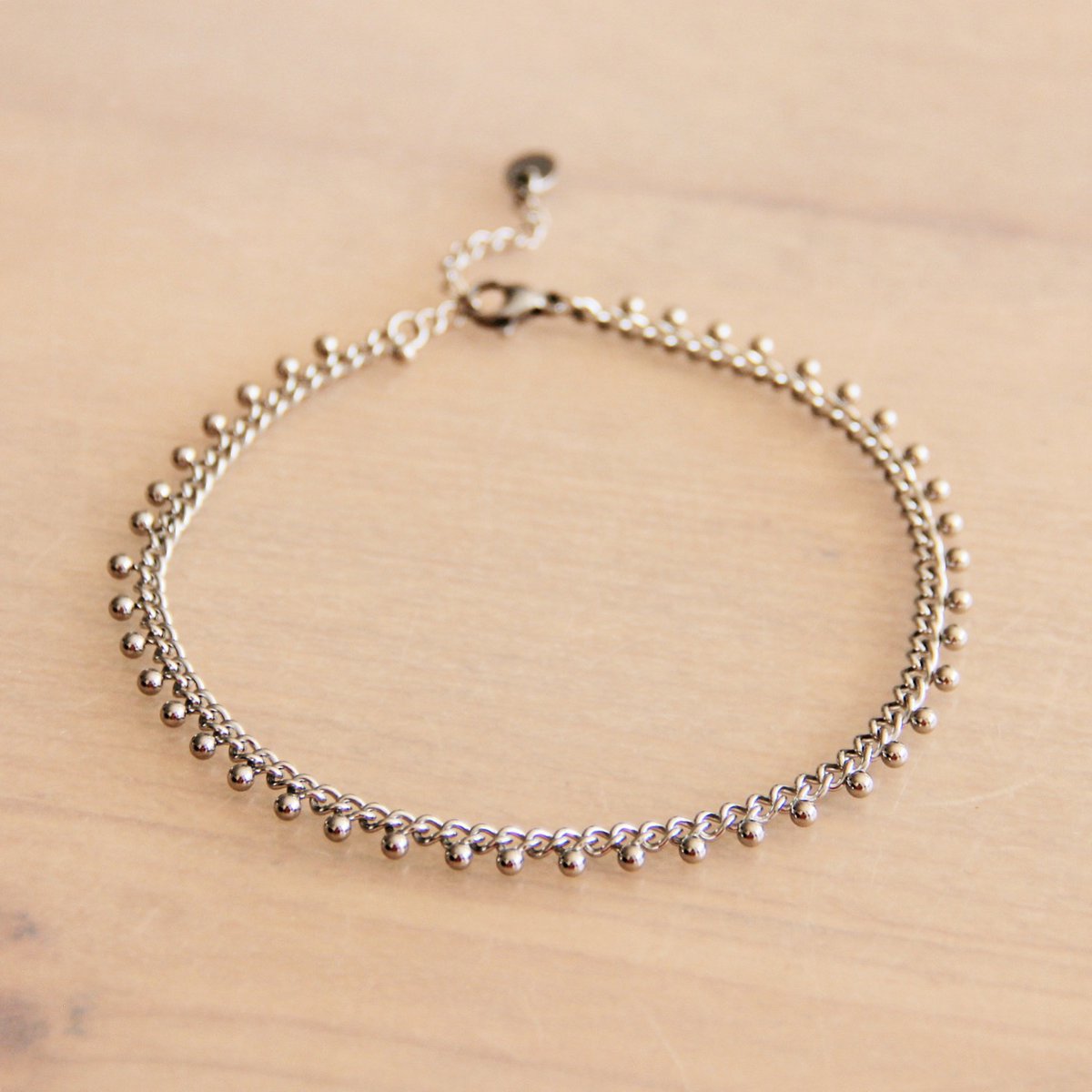 Fußkettchen aus Edelstahl mit Kugeln - Silber - AN917