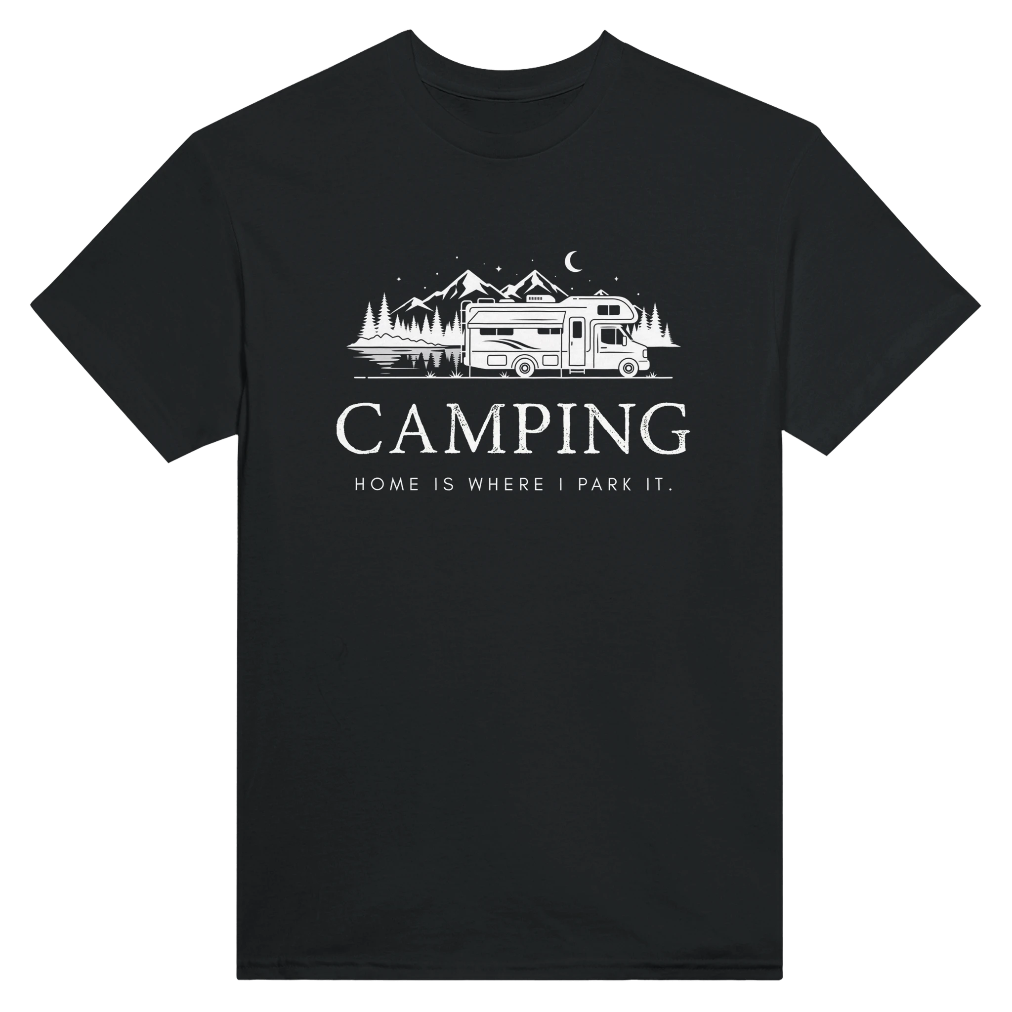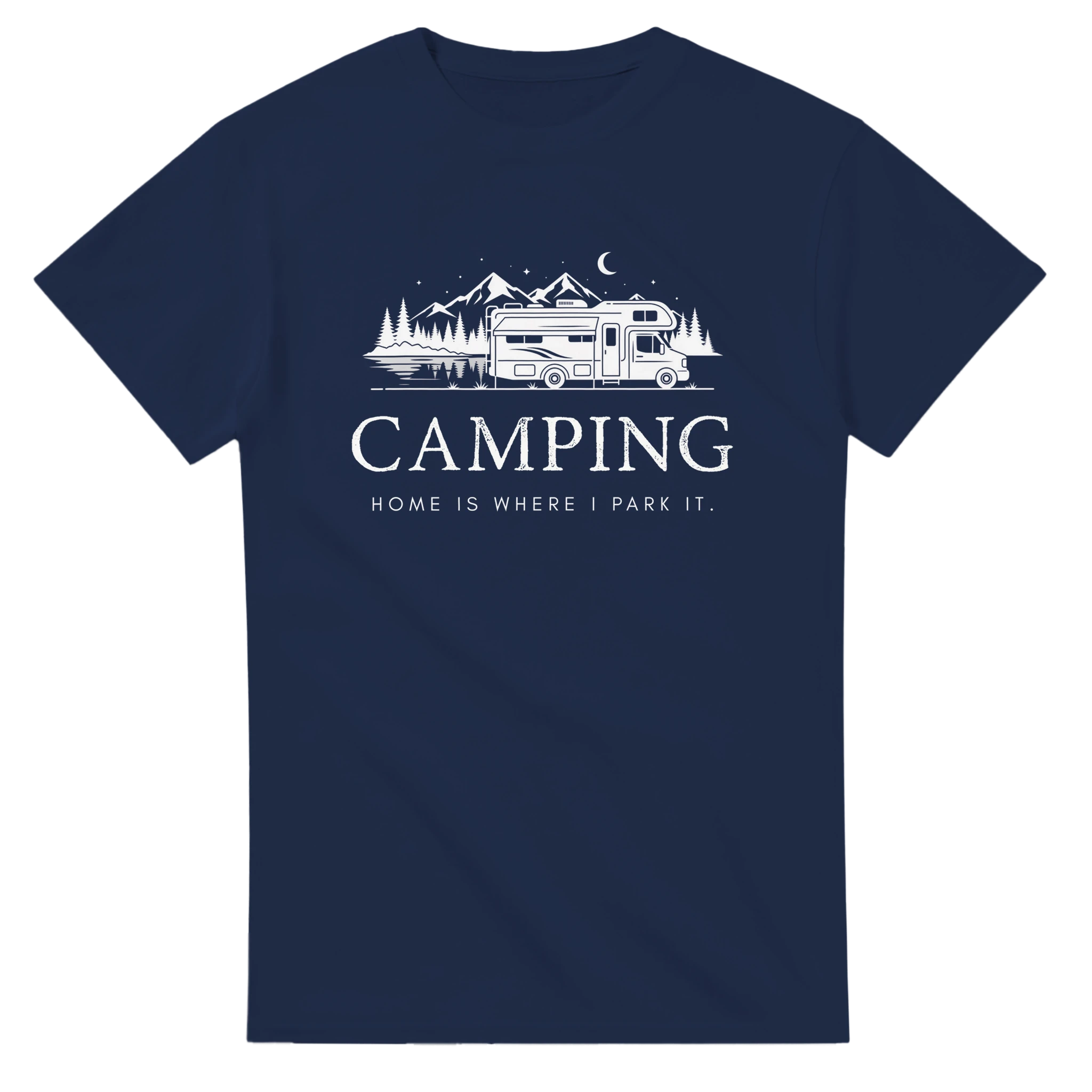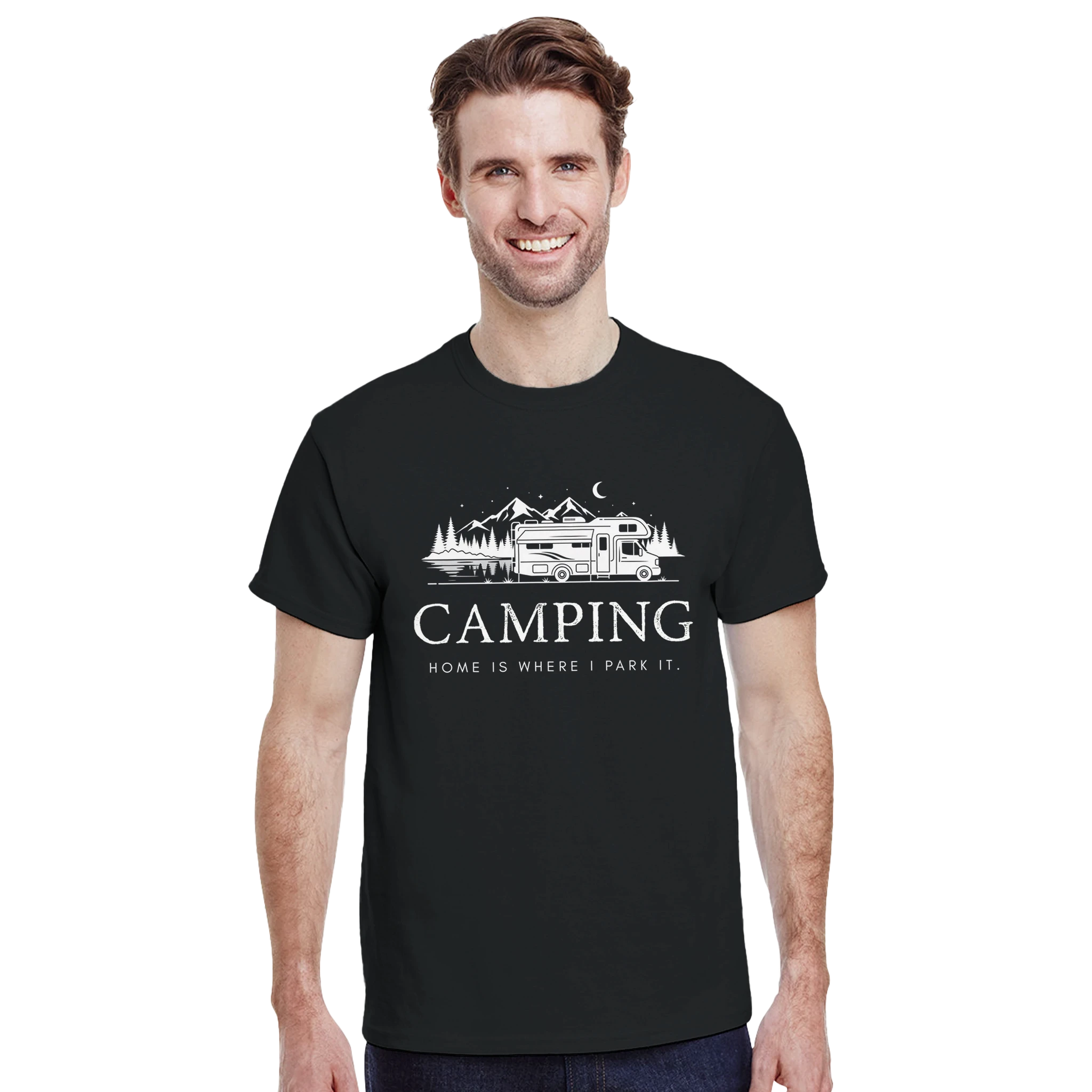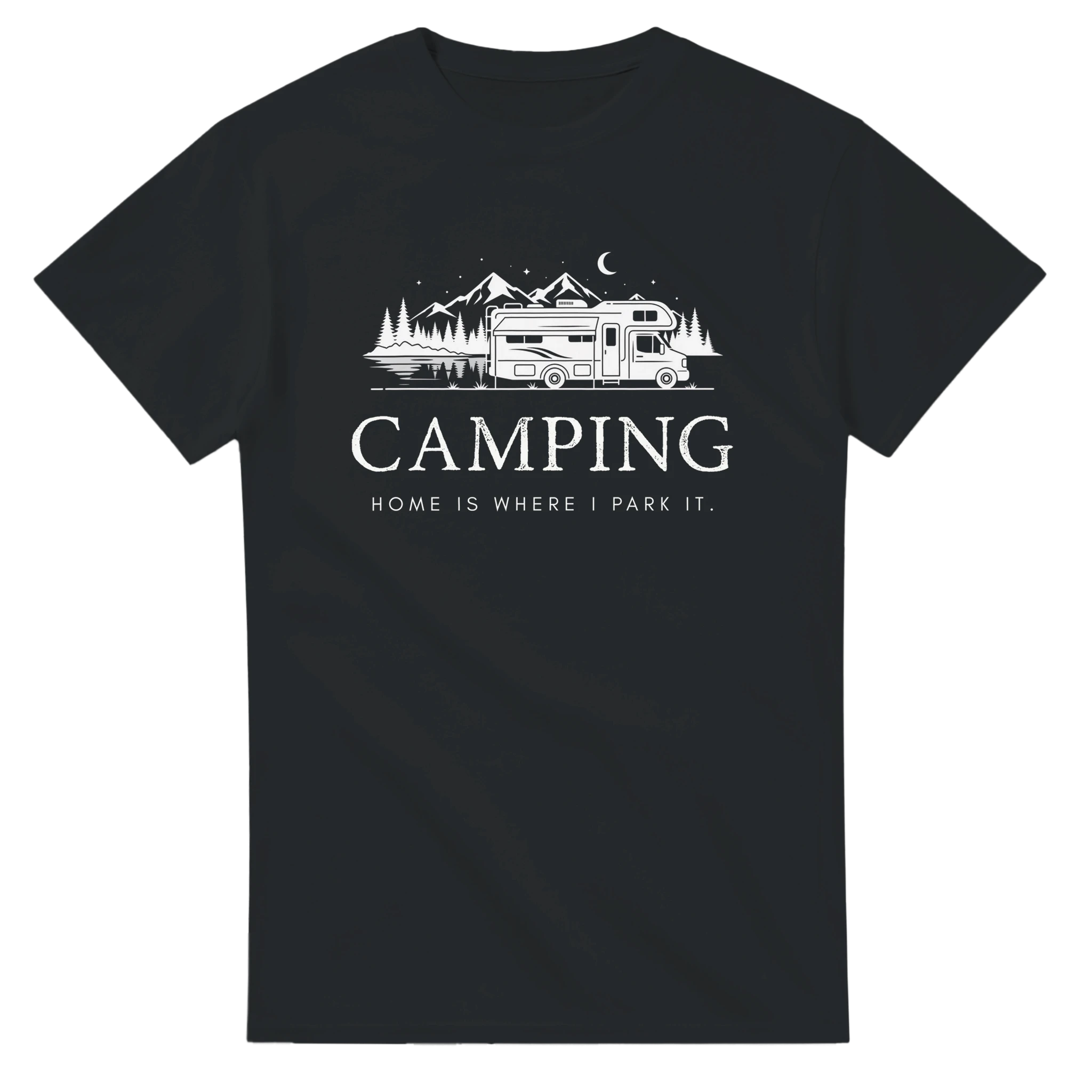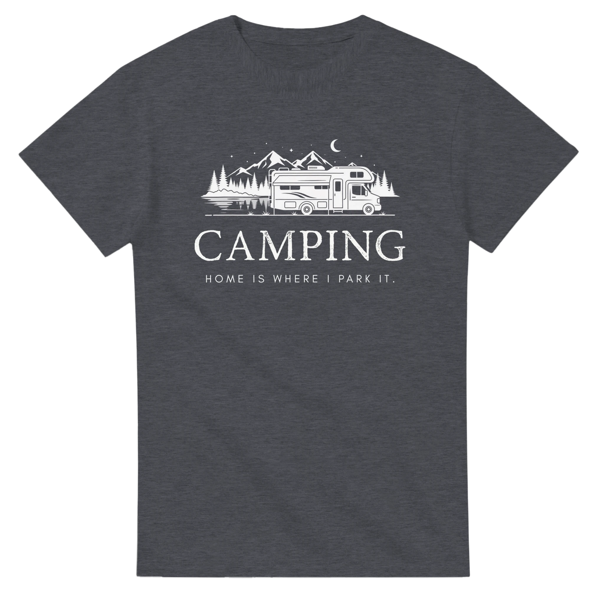 Entdecke unser lässiges Camper T-Shirt, das mit dem inspirierenden Spruch 'Camping - Home is where we park it' gestaltet ist. Dieses T-Shirt kombiniert Funktionalität und Stil perfekt und ist ideal für alle Campingliebhaber.