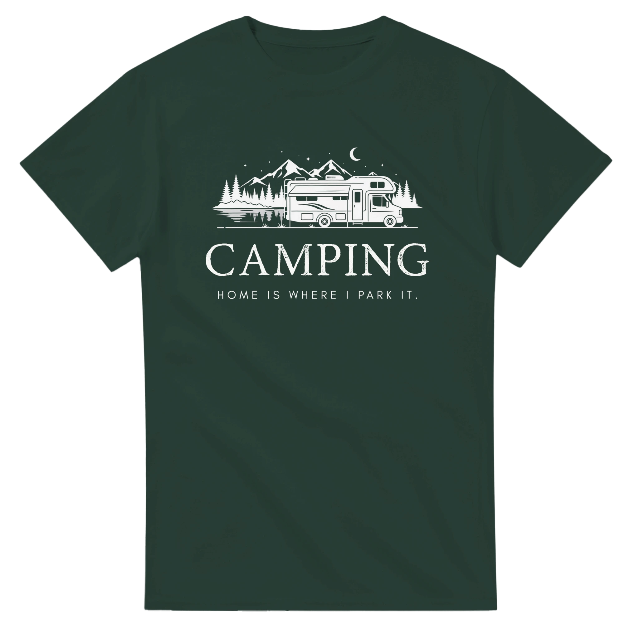Camper T-Shirt – "Camping - Home is Where We Park It" | in schwarz, grün, navy, und grau