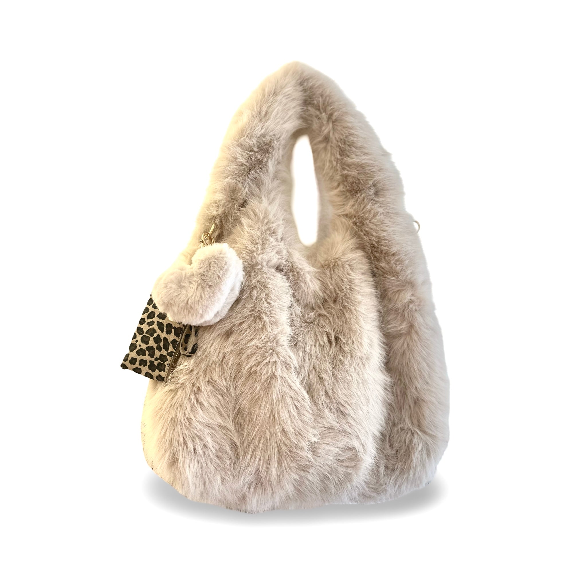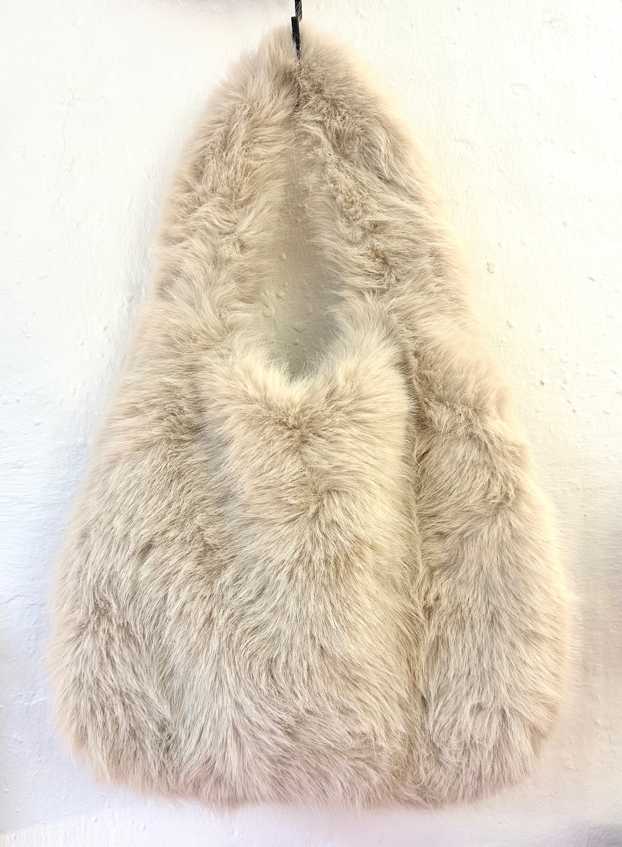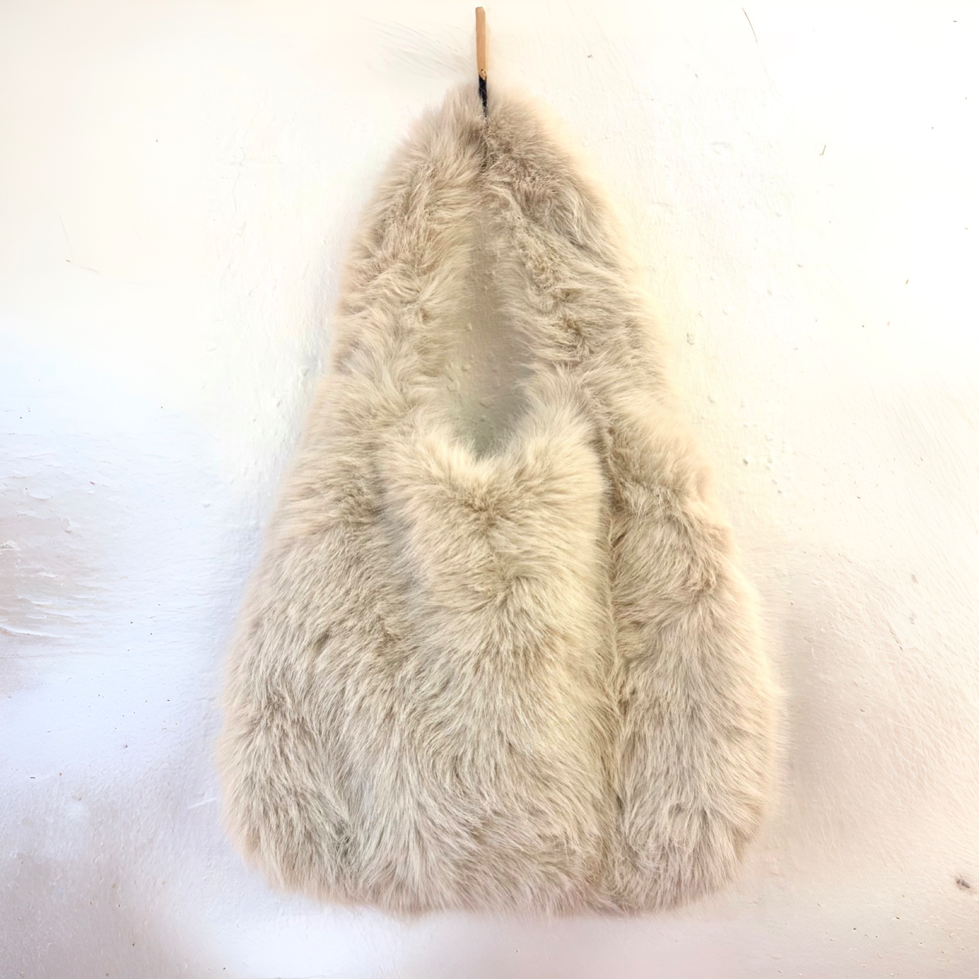 Beige Fell Tasche, Große Hobo Tasche aus Kunstfell