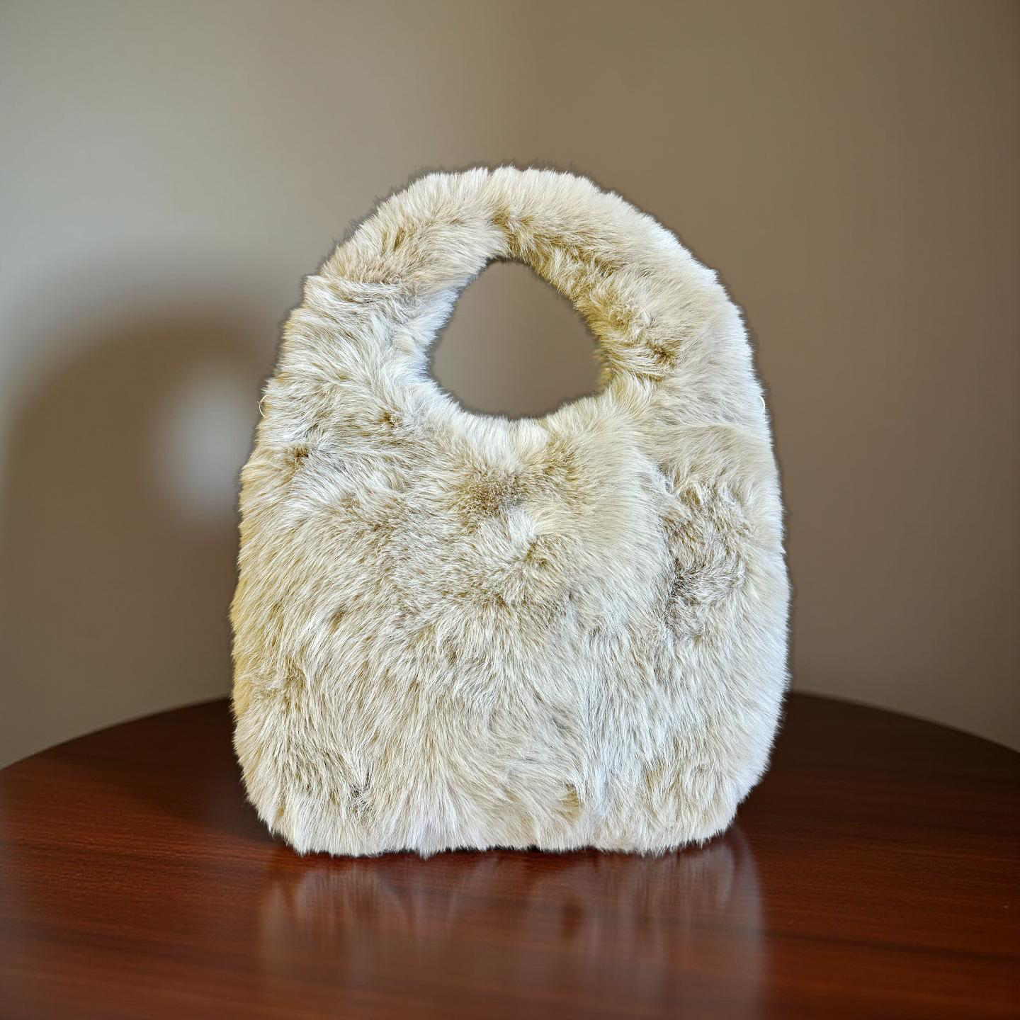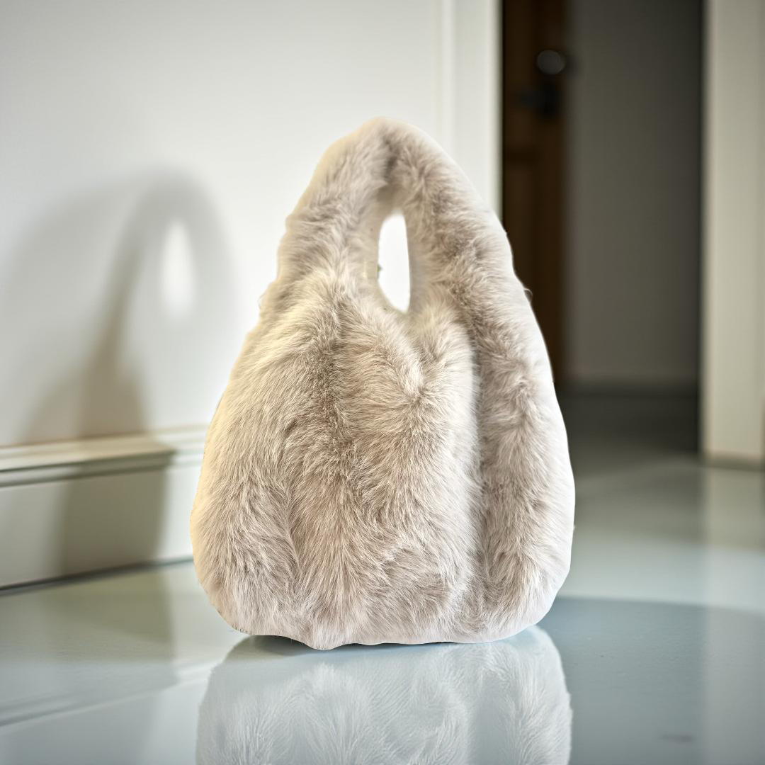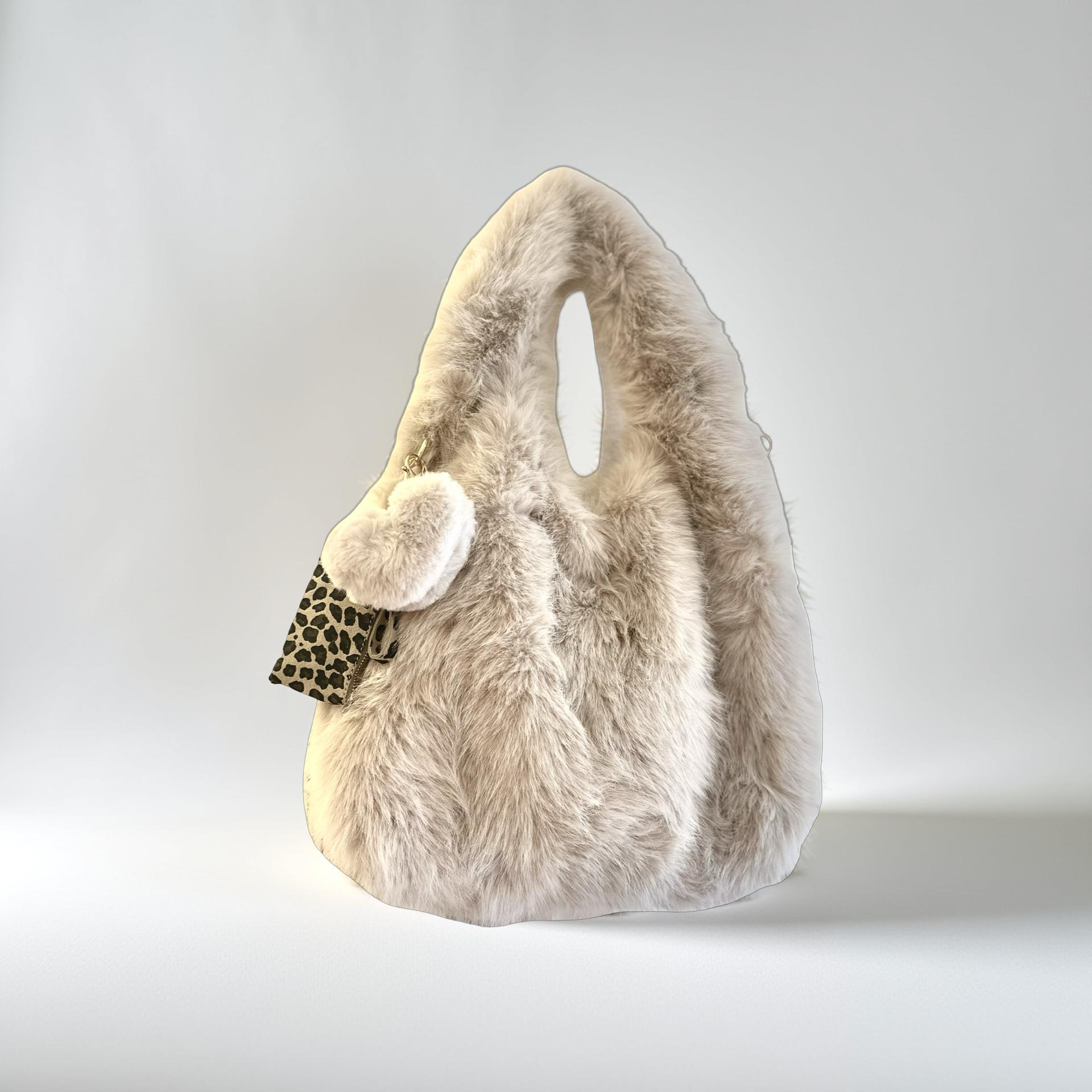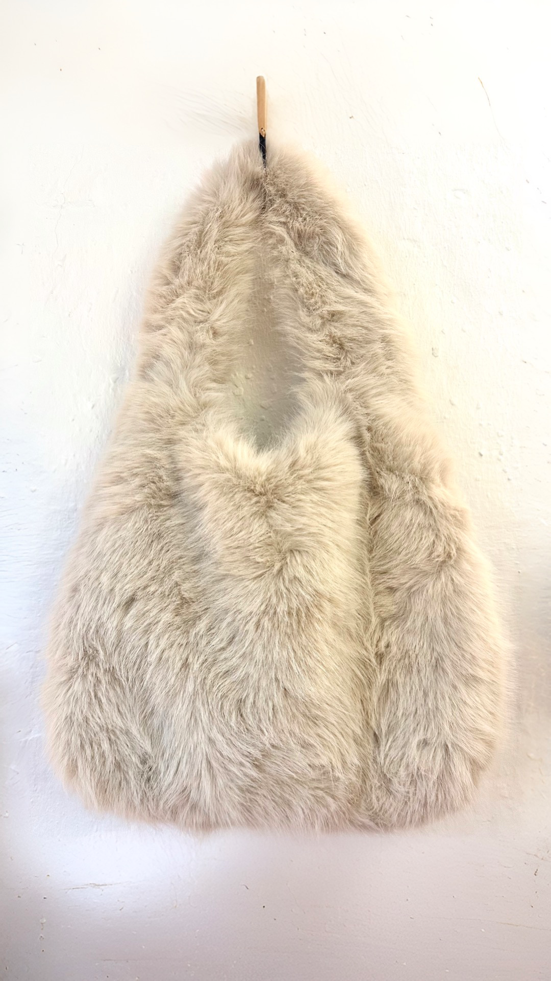 Beige Fell Tasche, Große Hobo Tasche aus Kunstfell