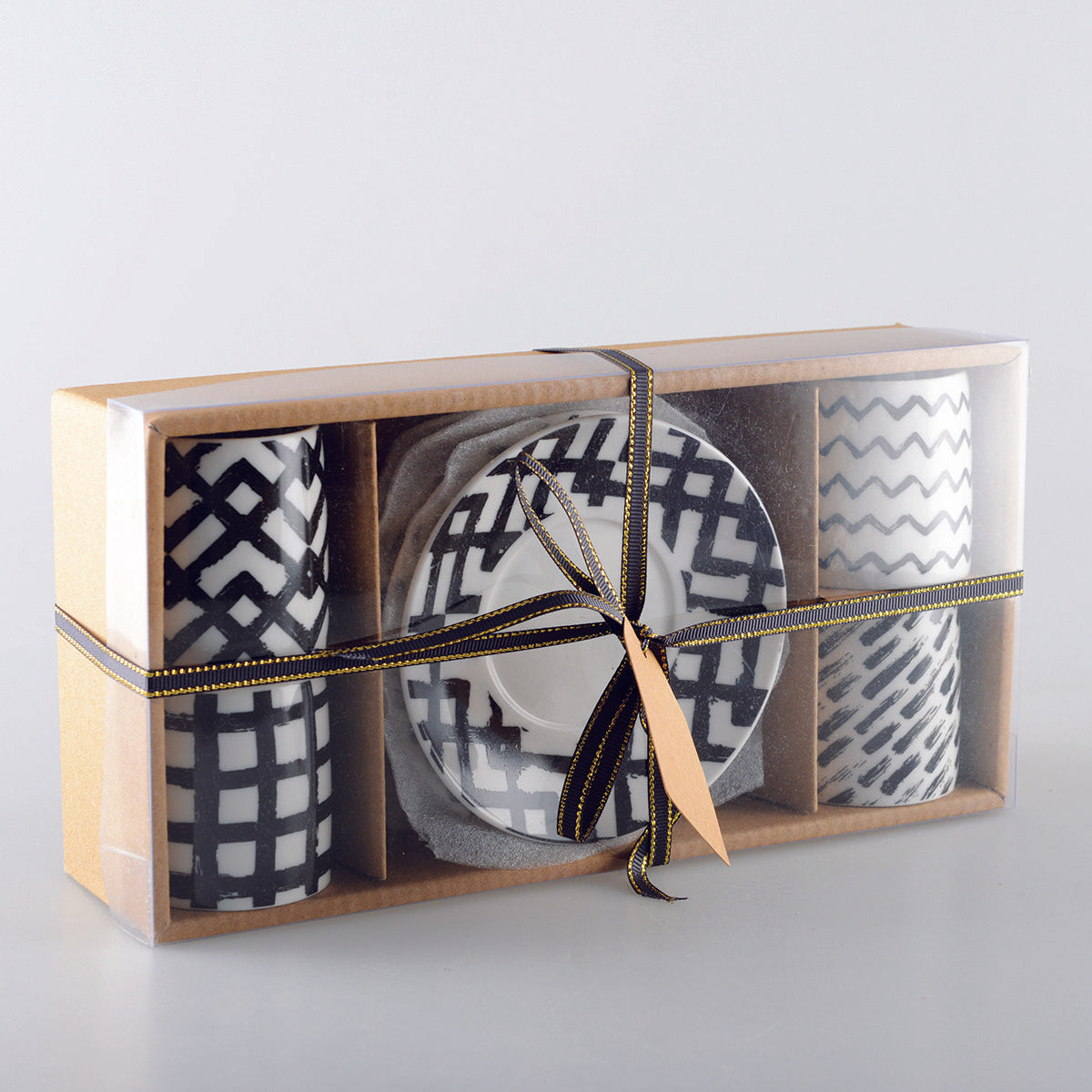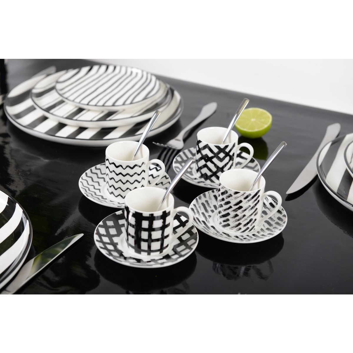 Designer-Tassen im 4 er Set | Kaffeetassen 90 ml | schwarz weiß | Geschenkbox