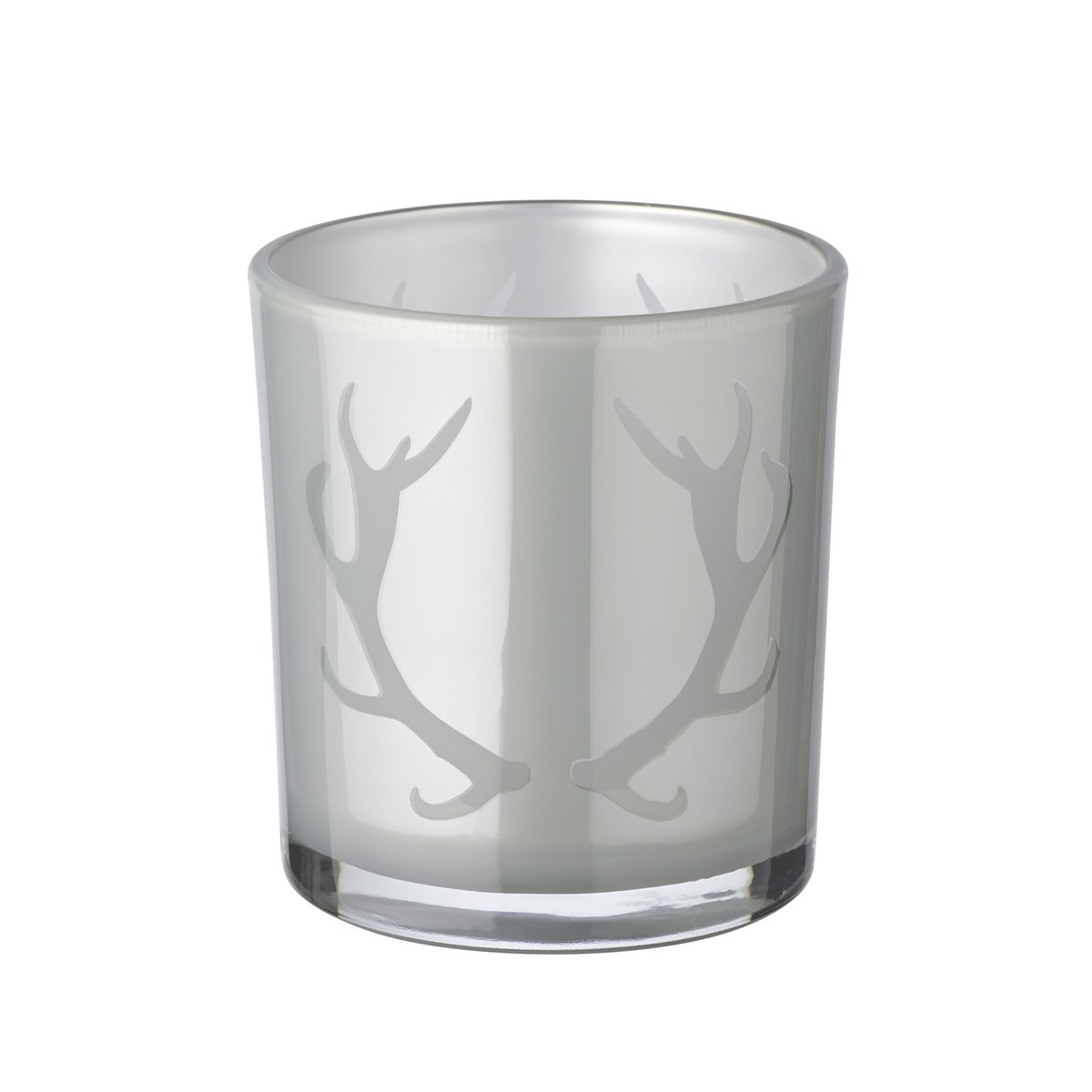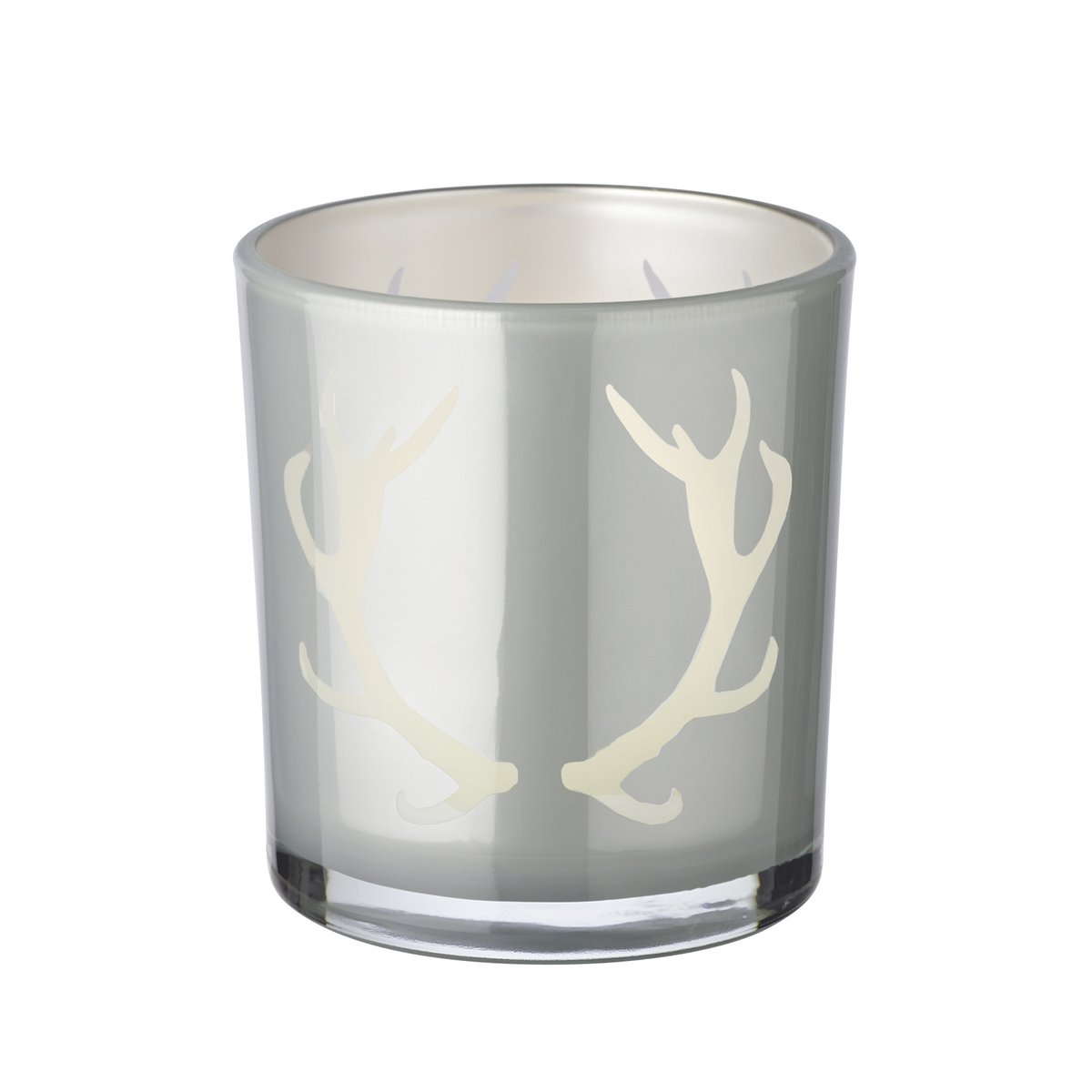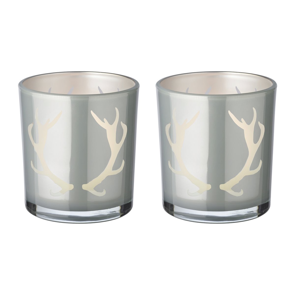 2er-Set Teelichtglas Ati (Höhe 8 cm, Ø 7 cm), grau, Windlicht mit Geweih-Motiv