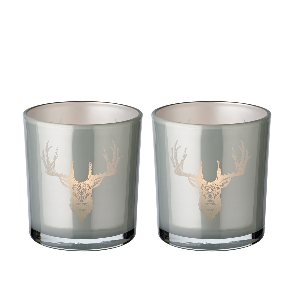 2er-Set Teelichtglas Eto (Höhe 8 cm, Ø 7 cm), grau, Windlicht mit Hirsch-Motiv
