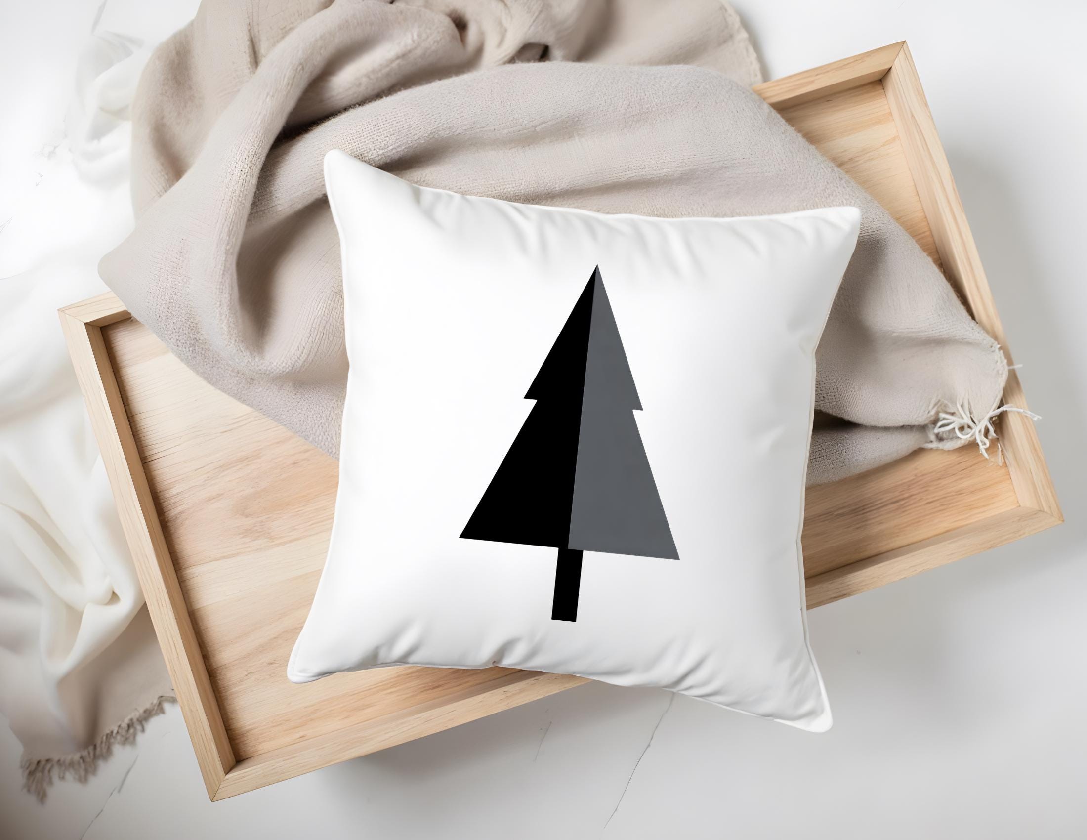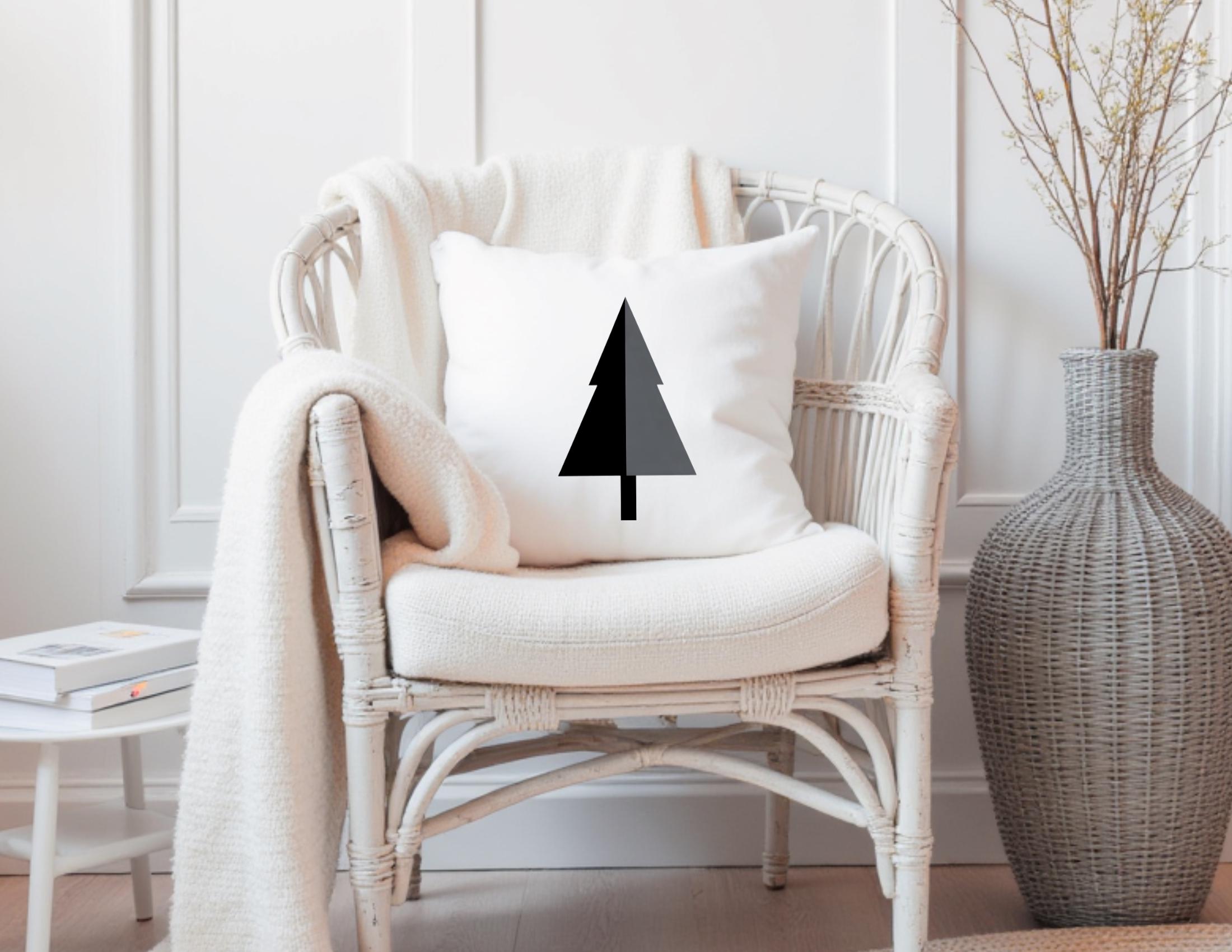 Minimalistische Weihnachtsdeko - das weiße Kissen mit der Tanne in grau und schwarz - jetzt ist Zeit für eine neue Deko.