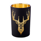 ✓ IHRE VORTEILE: Kerzenglas mit Hirsch-Design | Für Teelichter | Höhe 13 cm | Ø 10 cm | Indoor | Outdoor | toll kombinierbar | schwarz-gold | außen matt / innen gold