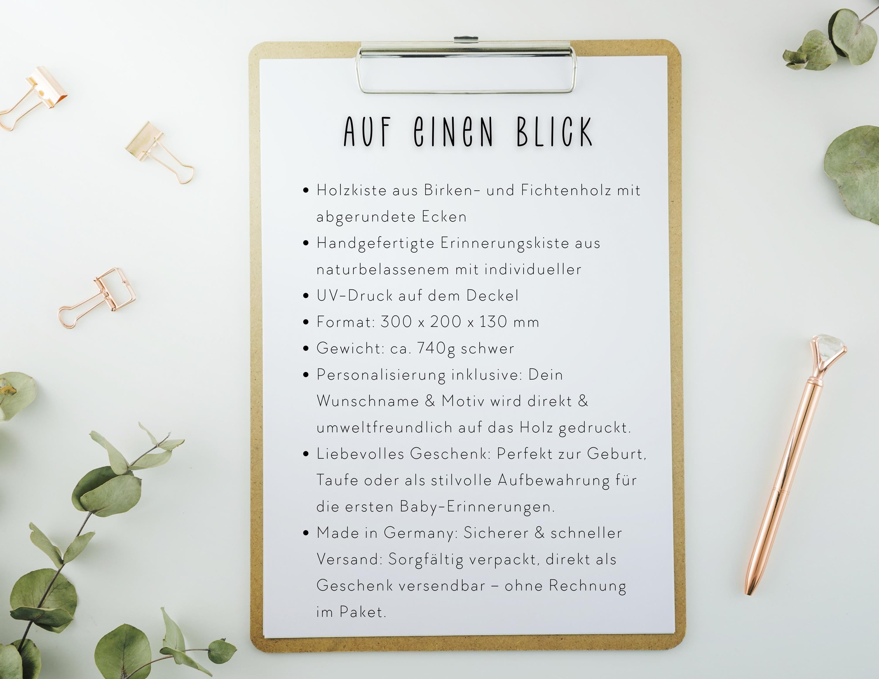 Ob zur Geburt, Taufe, zum Geburtstag oder einfach als liebevolle Aufmerksamkeit – diese Kiste ist mehr als ein Präsent. Sie schenkt wertvolle Erinnerungen ein schönes Zuhause und bleibt ein Begleiter fürs Leben.