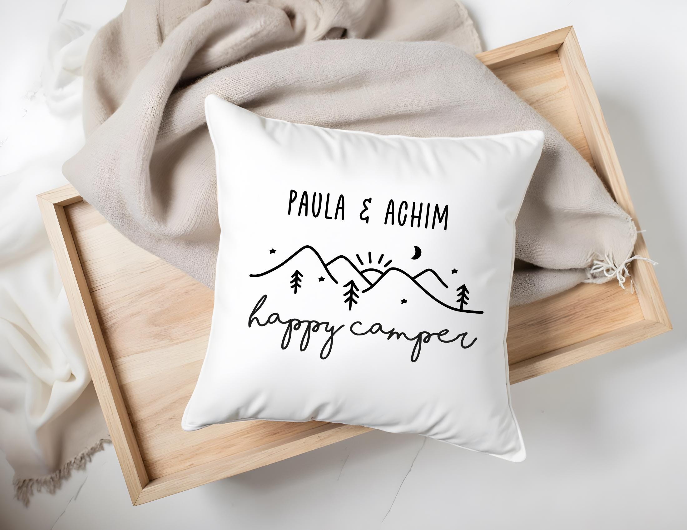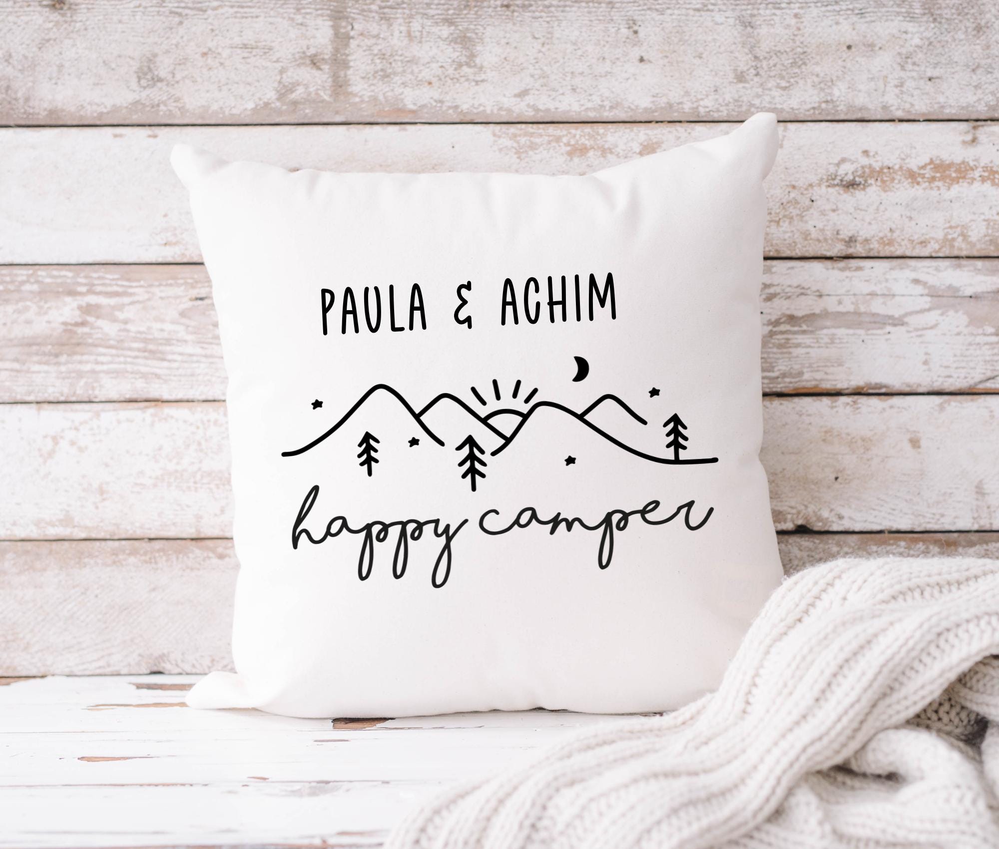 Camping Kissen Happy Camper | personalisiert | 40 x 40 cm | Wohnmobil Deko | Geschenk Campingfans