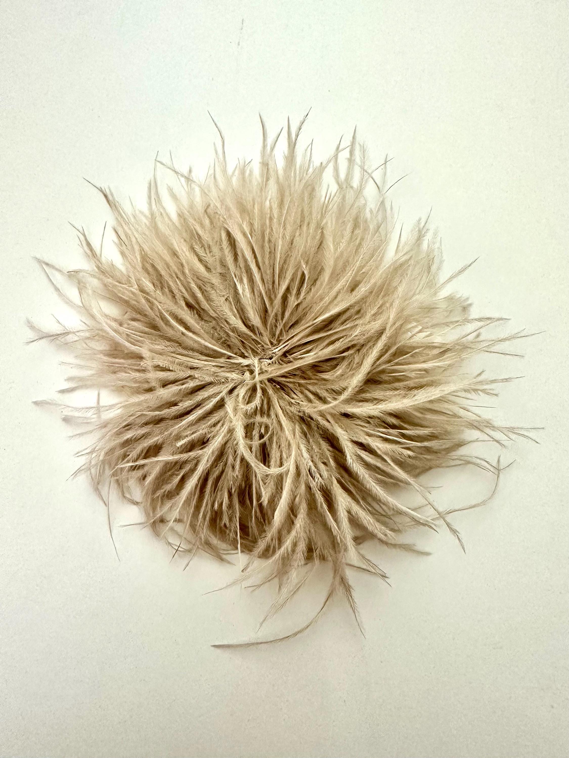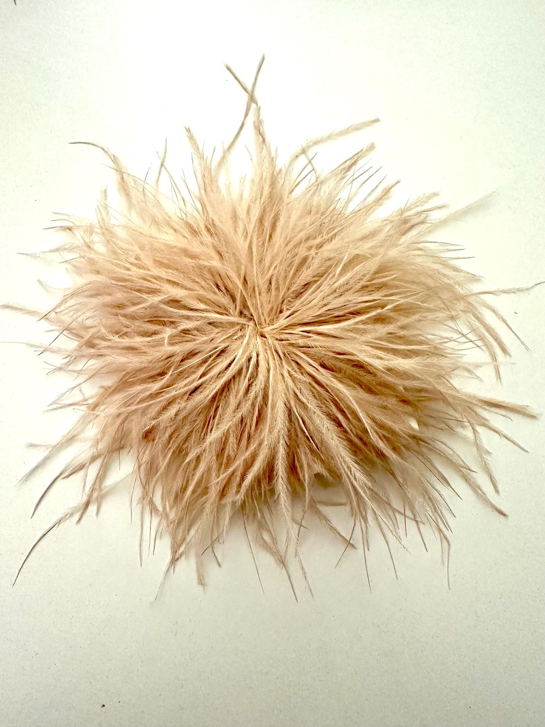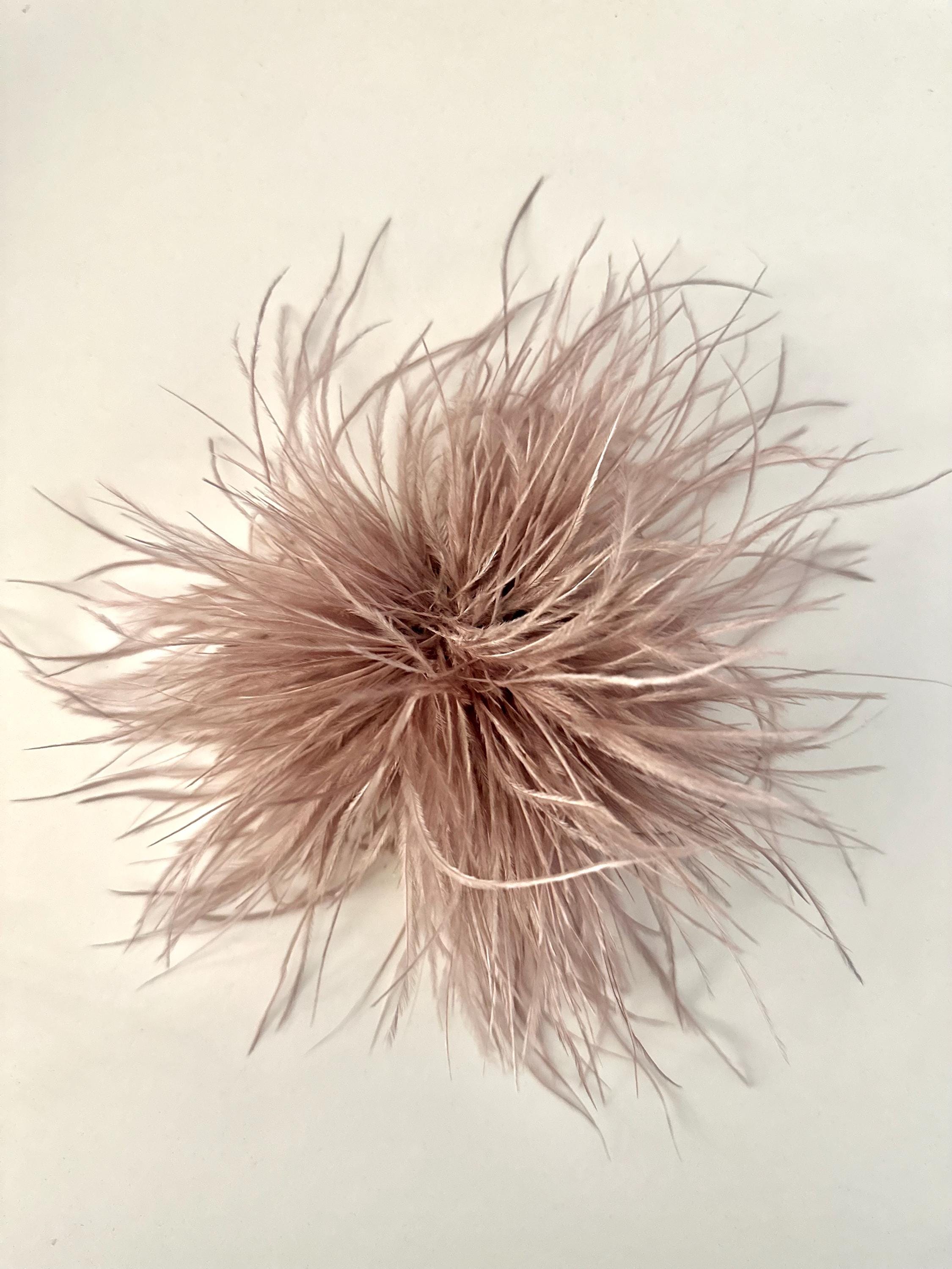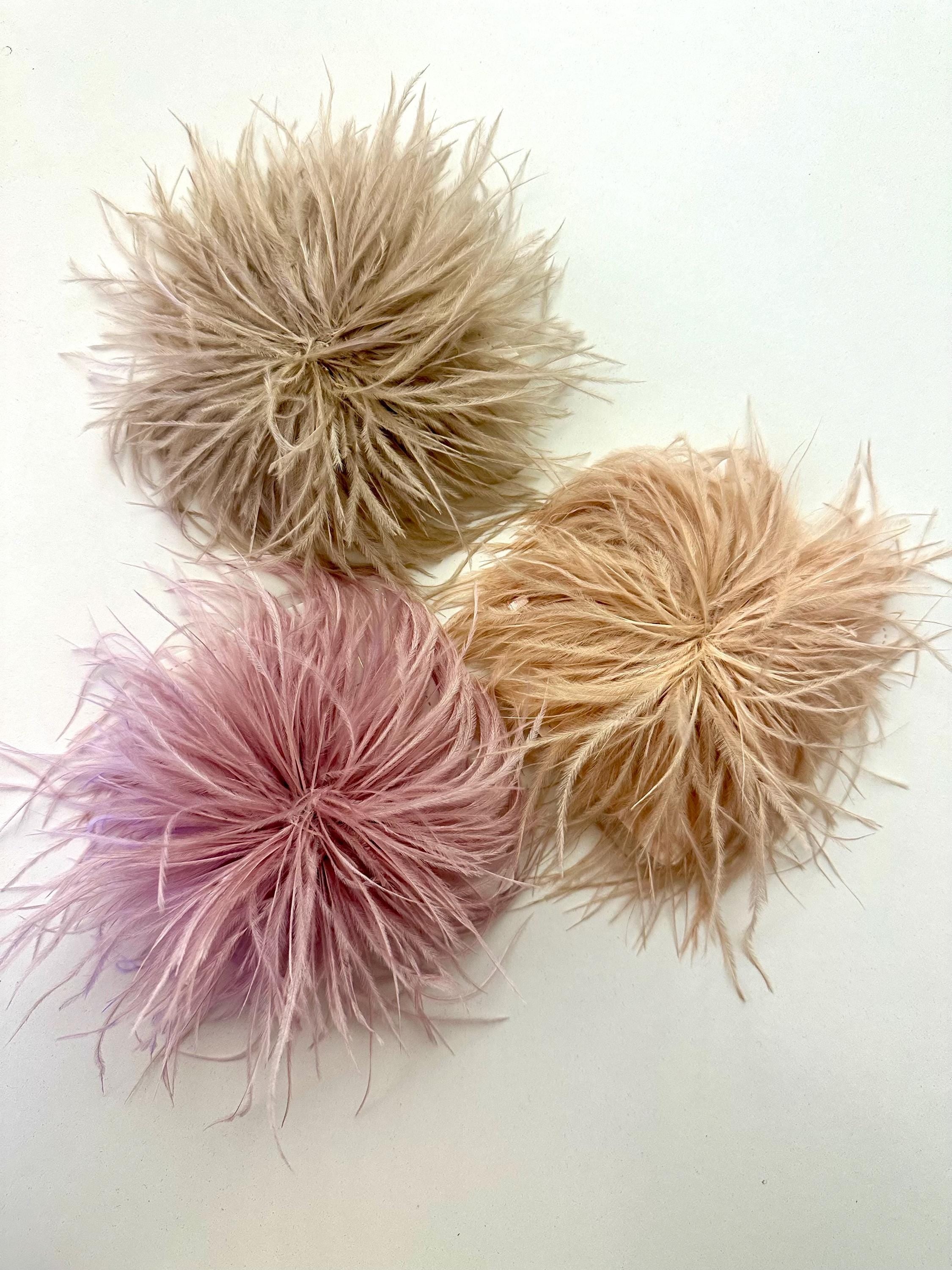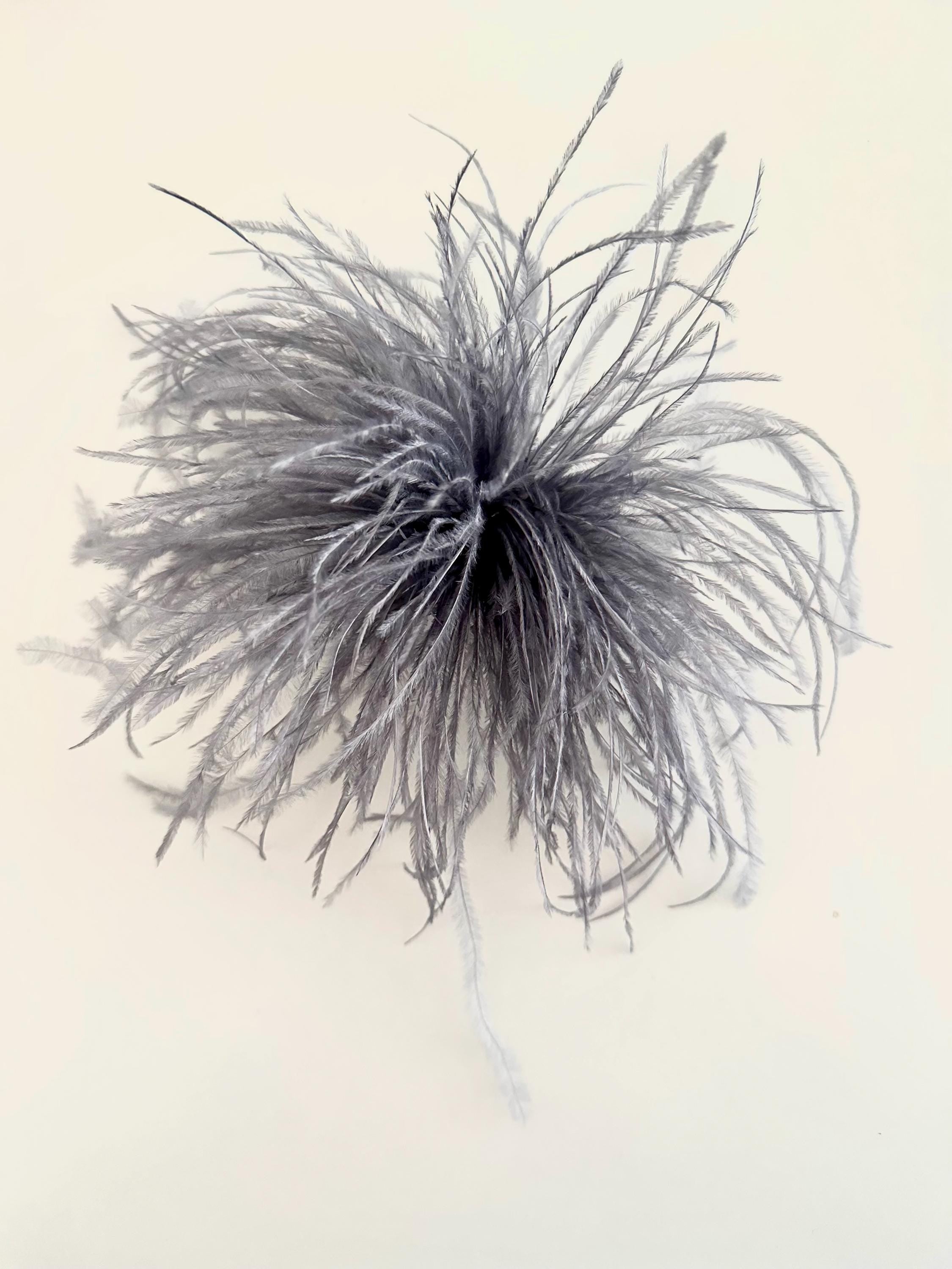 Dieses besondere Accessoire besteht aus einem voluminösen Federornament, das einem zarten, flauschigen Ball ähnelt. Ein natürlicher, luftiger Look mit einer lebendigen, dynamischen Form. Feine Spitzen, die sanft in unterschiedliche Richtungen zeigen, verleihen dem Schmuckstück zusätzliche Leichtigkeit und Bewegung. Die Broschen aus weichen Federn sind sind in verschiedenen Farbtönen erhältlich: kräftiges Rosa, zartes Rosa und Grau.