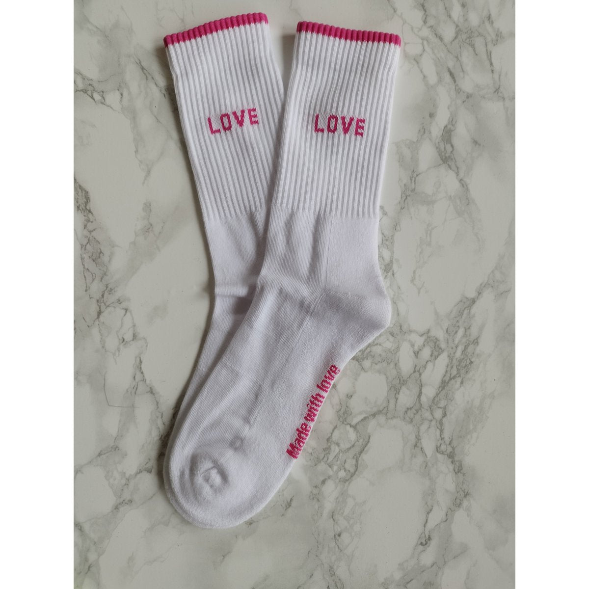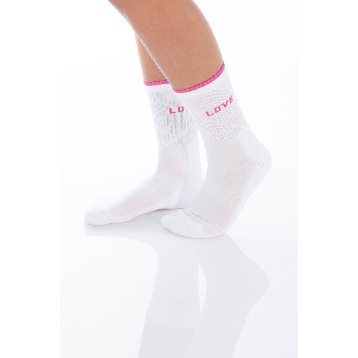 Darum verliebst du dich in LOVE PINK LOVE PINK ist eine wunderschöne, bequeme Tennissocke, die dezent aber knallig in Neonpink das Wort „LOVE“ in den Schaft gestrickt hat. Ein Statement das es sich lohnt zu zeigen. Genau so dezent, aber besonders ist der Neonfarbene Abschlussringel im Bündchen. Besondere Qualitätsmerkmale Mit LOVE PINK setzt du aber nicht nur ein tollen, buntes Statement, sondern die Socken lassen sich dank der hochwertigen Verarbeitung sehr angenehm tragen. Die fluffige Frotteesohle sorgt für eine angenehme Federung und die Biobaumwolle fühlt sich samtig weich auf der Haut an. So fällt die LOVE PINK aus LOVE PINK fällt am Fuß normal aus. Mit einem 39er Fuß solltest du daher Größe 39/42 wählen. Wie bei allen Tennissocken ist der Schaft eher straff gestrickt und nicht besonders elastisch. Pflegehinweis Die LOVE PINK Socken lassen sich ganz einfach und unkompliziert bei 30 Grad waschen, ohne dass du etwas beachten musst. Damit du lange etwas von ihnen hast, empfehlen wir dir die Socken NICHT in den Trockner zu trocken, da es Textilien sehr beansprucht. Materialzusammensetzung: 80% Bio-Baumwolle, 17% Polyamid, 3% Elasthan