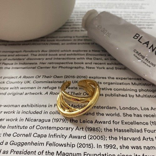 Mutiger Look. Geometrischer Ring mit gekreuzten Linien