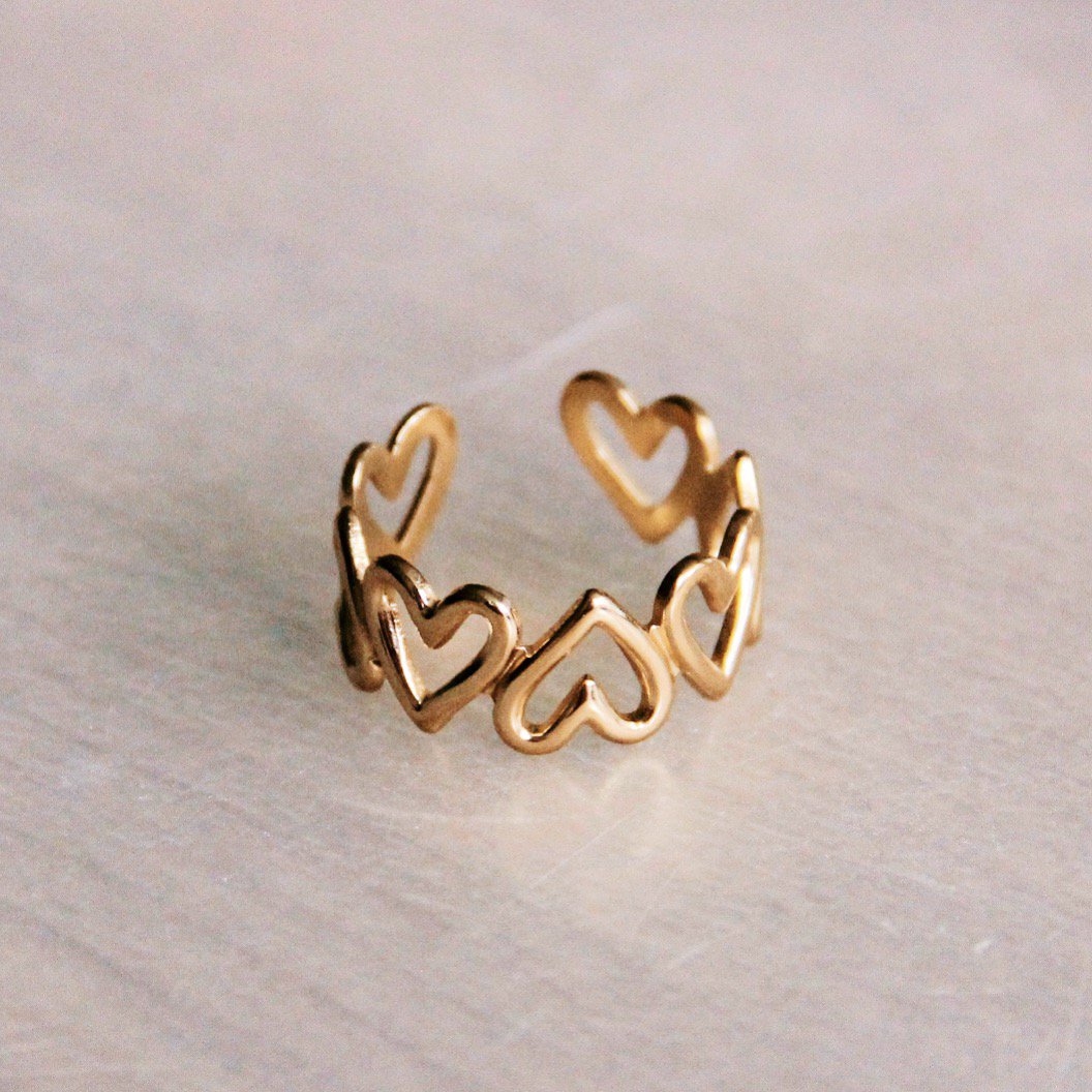 Stainless steel adjustable ring with heart – gold