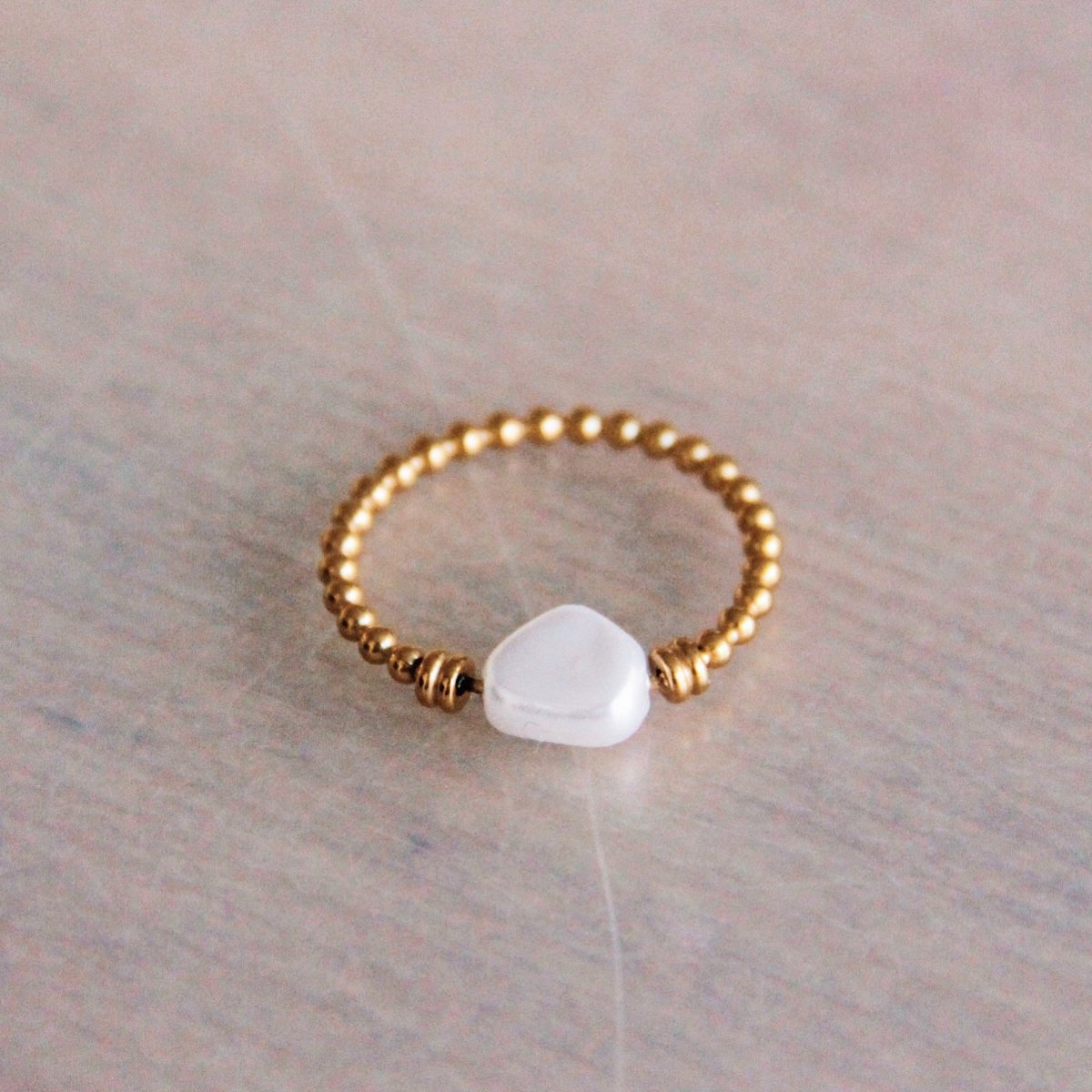 Kugelring aus Stahl mit Perle - Gold