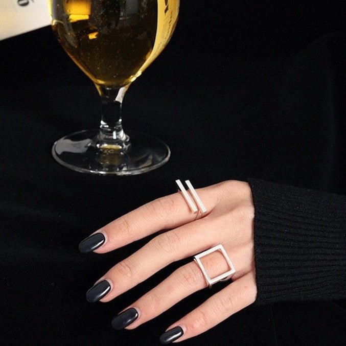 Geometrischer Doppelstegring aus Sterlingsilber und Goldvermeil