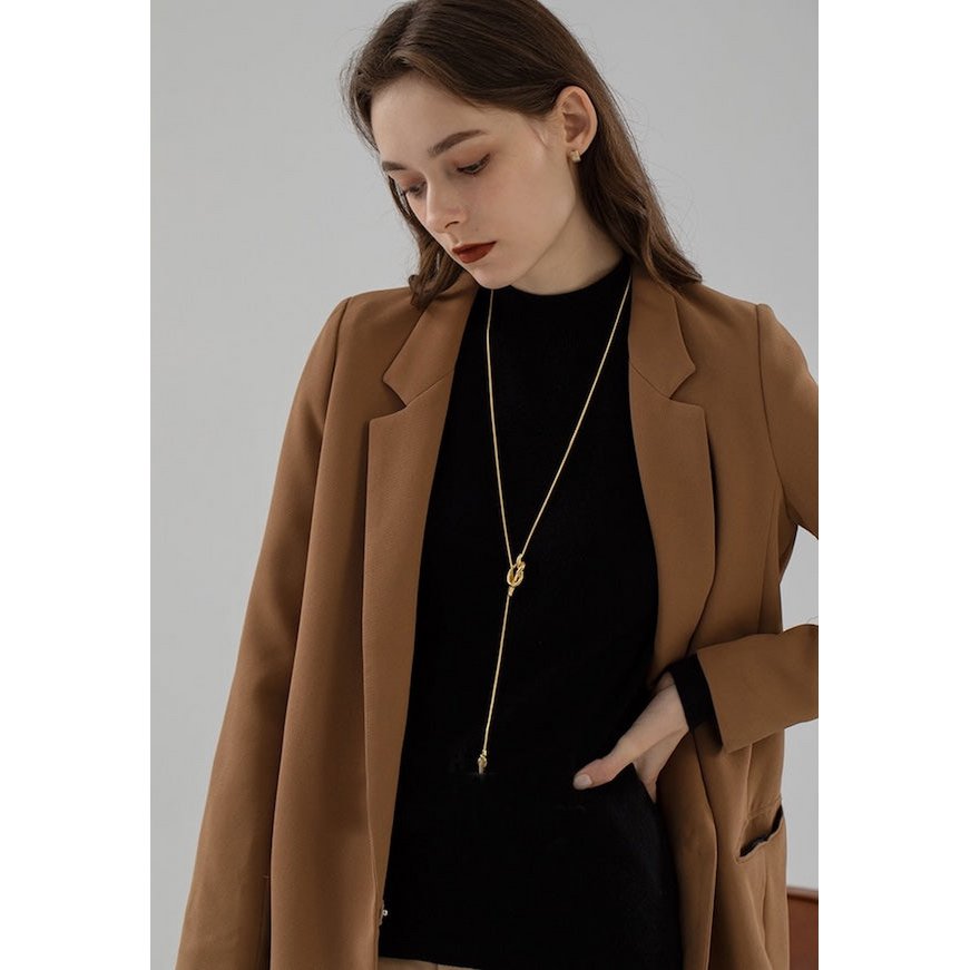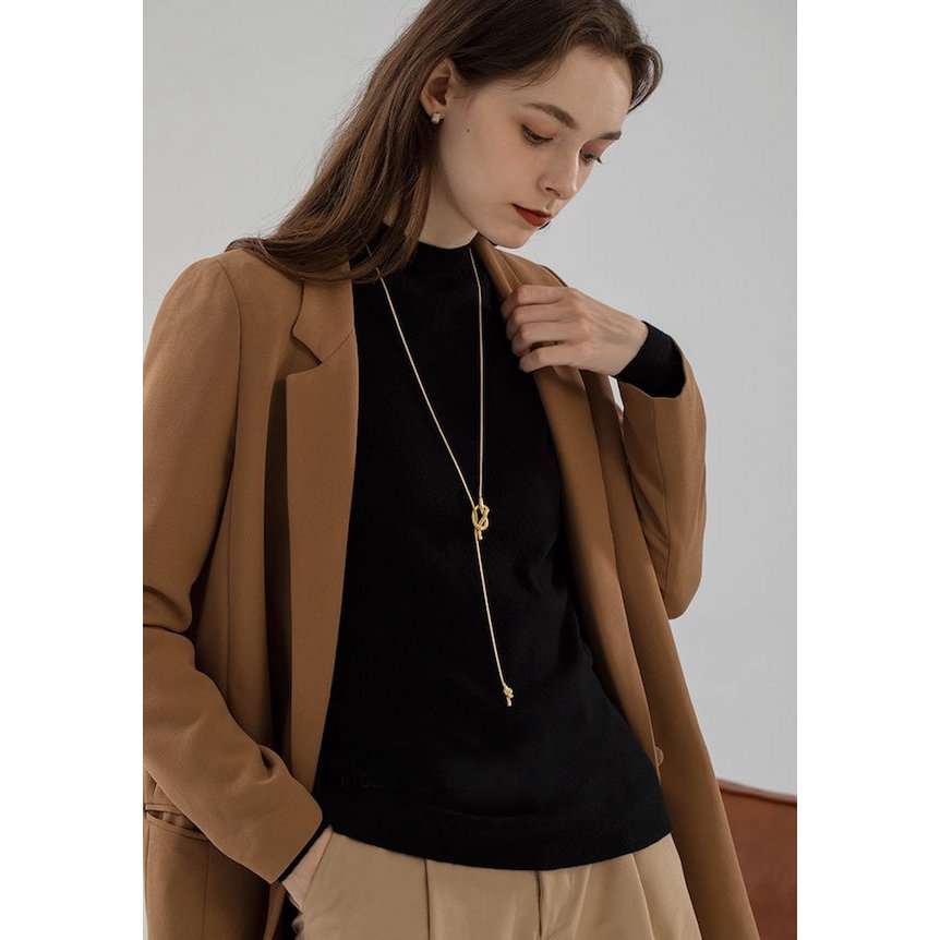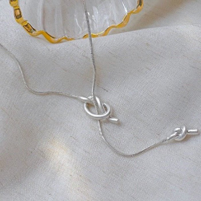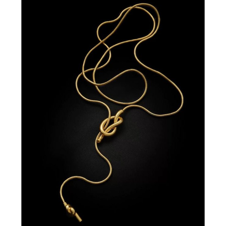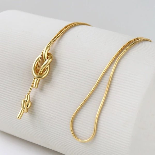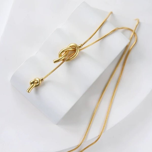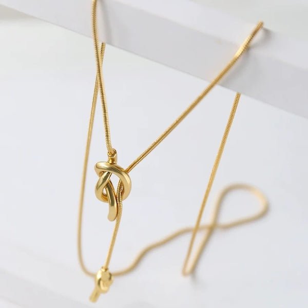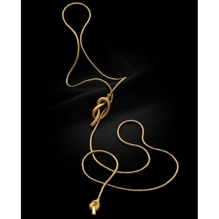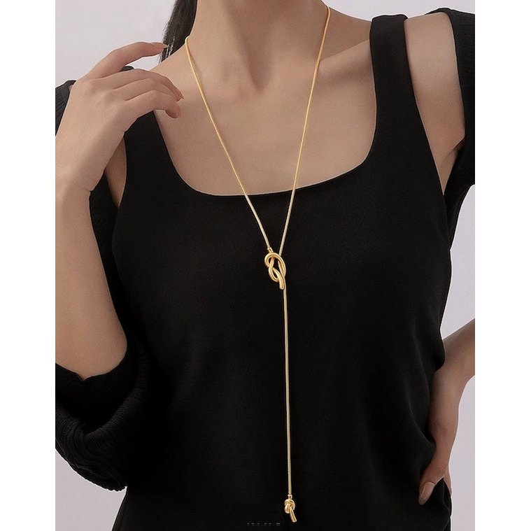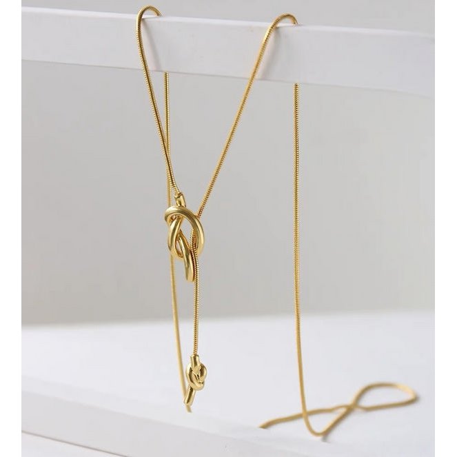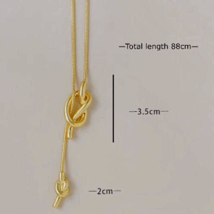 Lange Pullover-Halskette mit Knoten – Gold und Silber