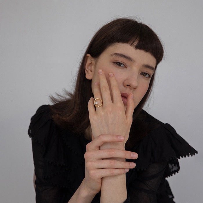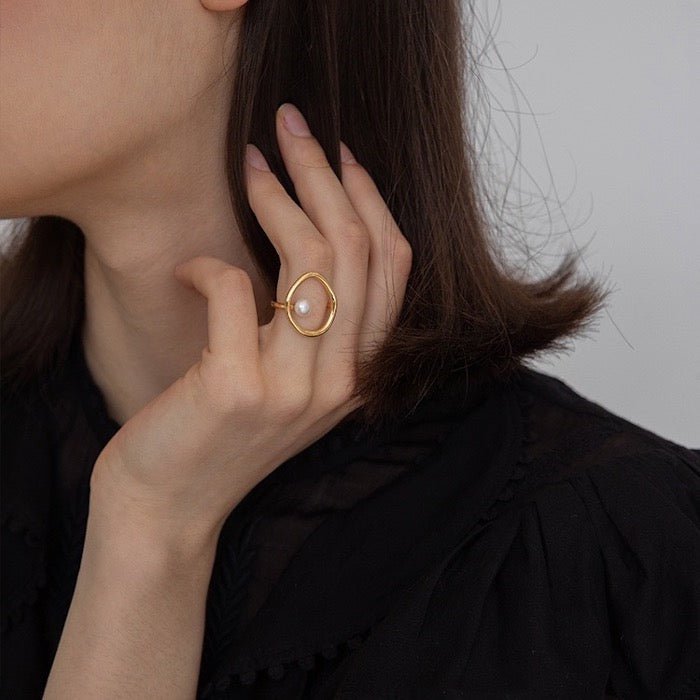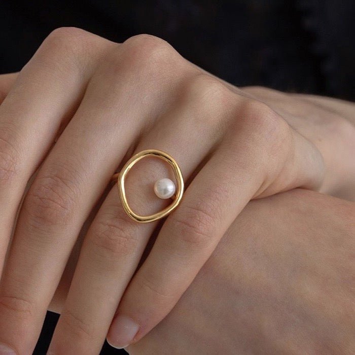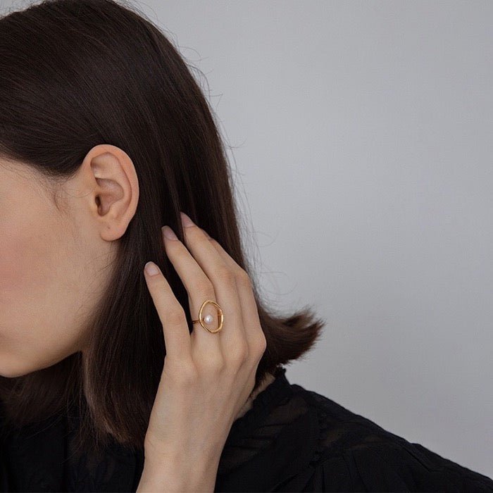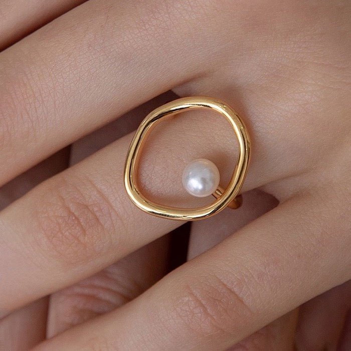 Minimalistischer ovaler Linienring mit Süßwasserperle