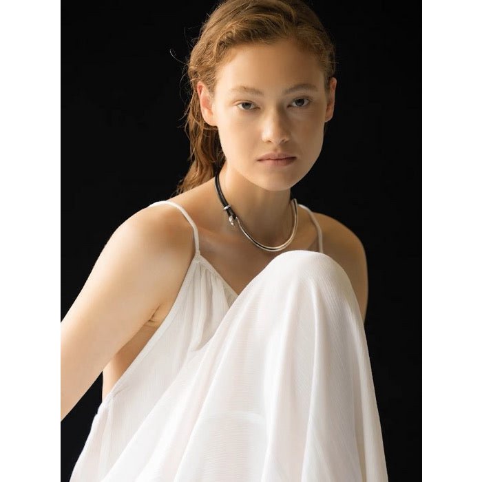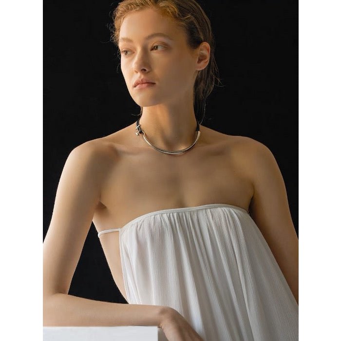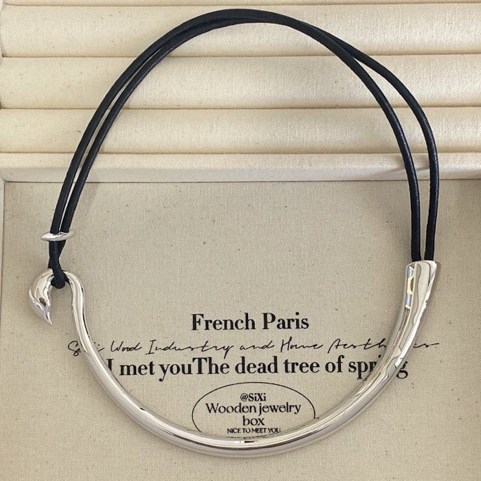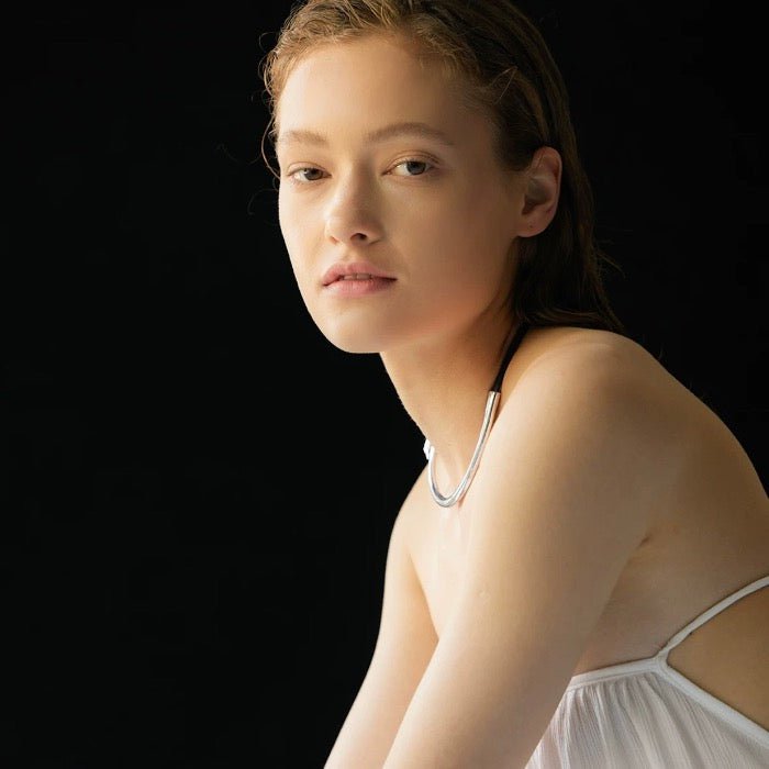 Minimalistische Silberhalskette mit Lederband