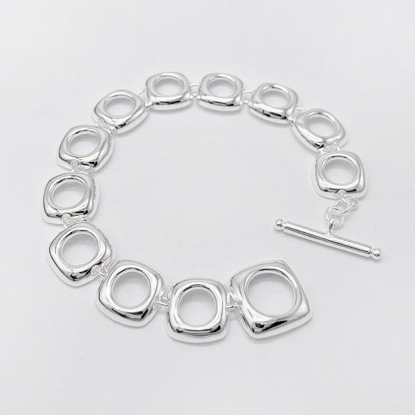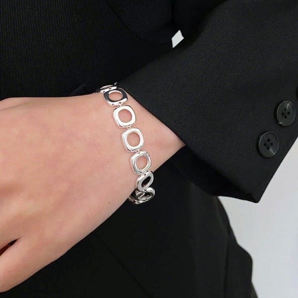 Klobiges Gliederarmband aus Sterlingsilber mit quadratischem Rahmen und OT-Schnalle