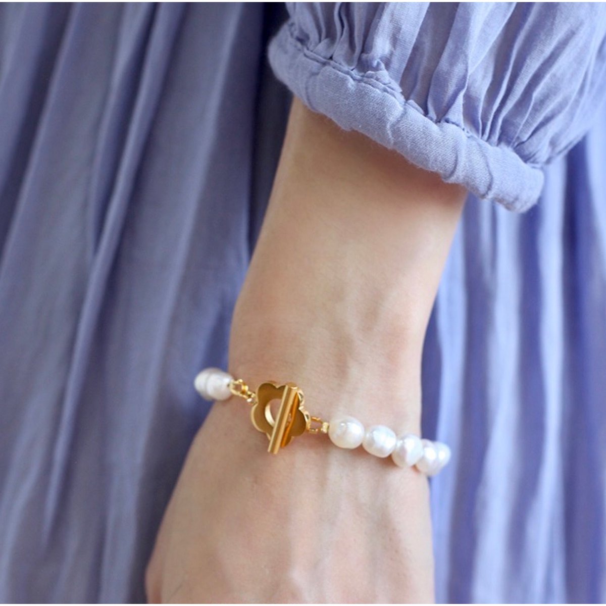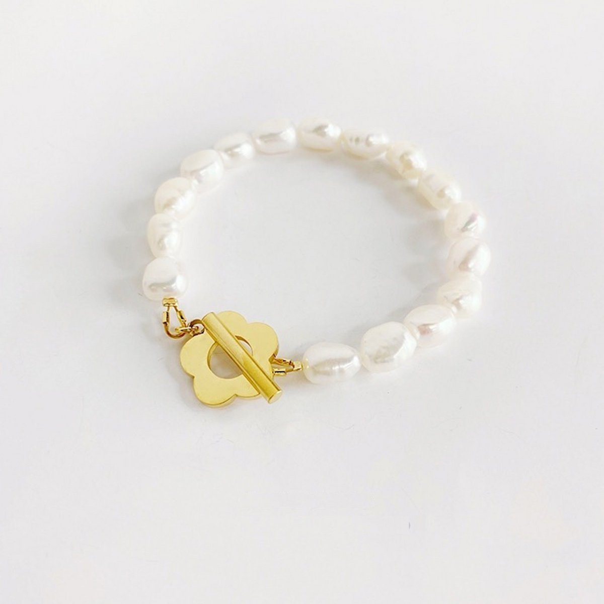 Einzigartiges natürliches Süßwasserperlen-Perlenarmband mit Blumenanhänger - Süßwasserperlen in AAAA-Qualität