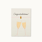 Ring for Champagne! Egal was es zu feiern gibt, am besten begießt man es mit Champagner! Karte mit einer Champagnerflasche als 18K vergoldeter Anhänger an einem rosafarbenen Armband. Designed and assembled with Love in Munich. Text: "Congratulations!"