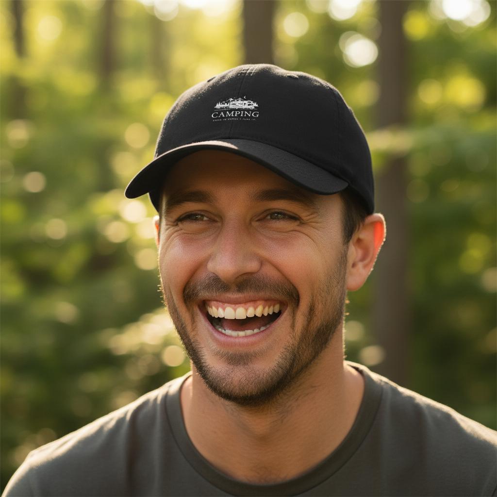Coole schwarze Kappe "Camping" mit weißem Aufdruck | Cap für Camper