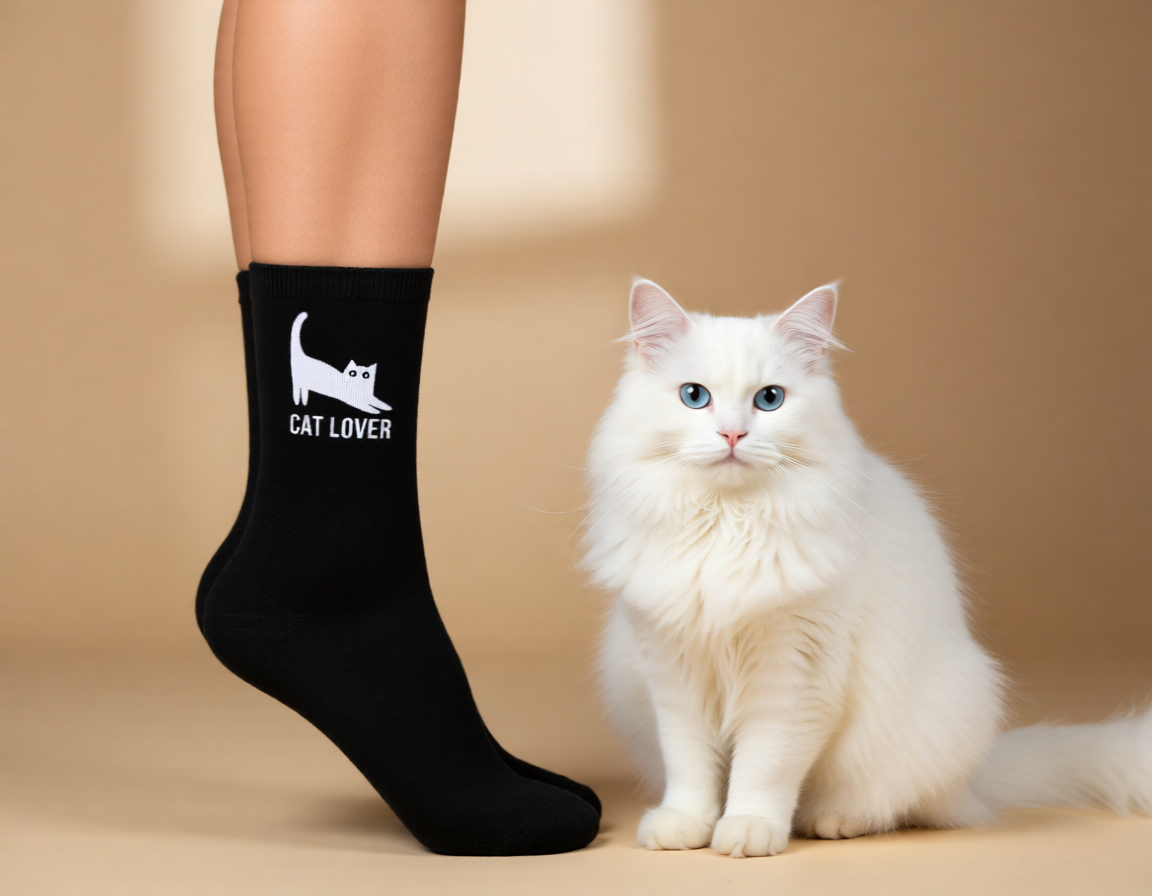 Socken für Cat Lover | weiße oder schwarze Crew Socken mit Katzenmotiv